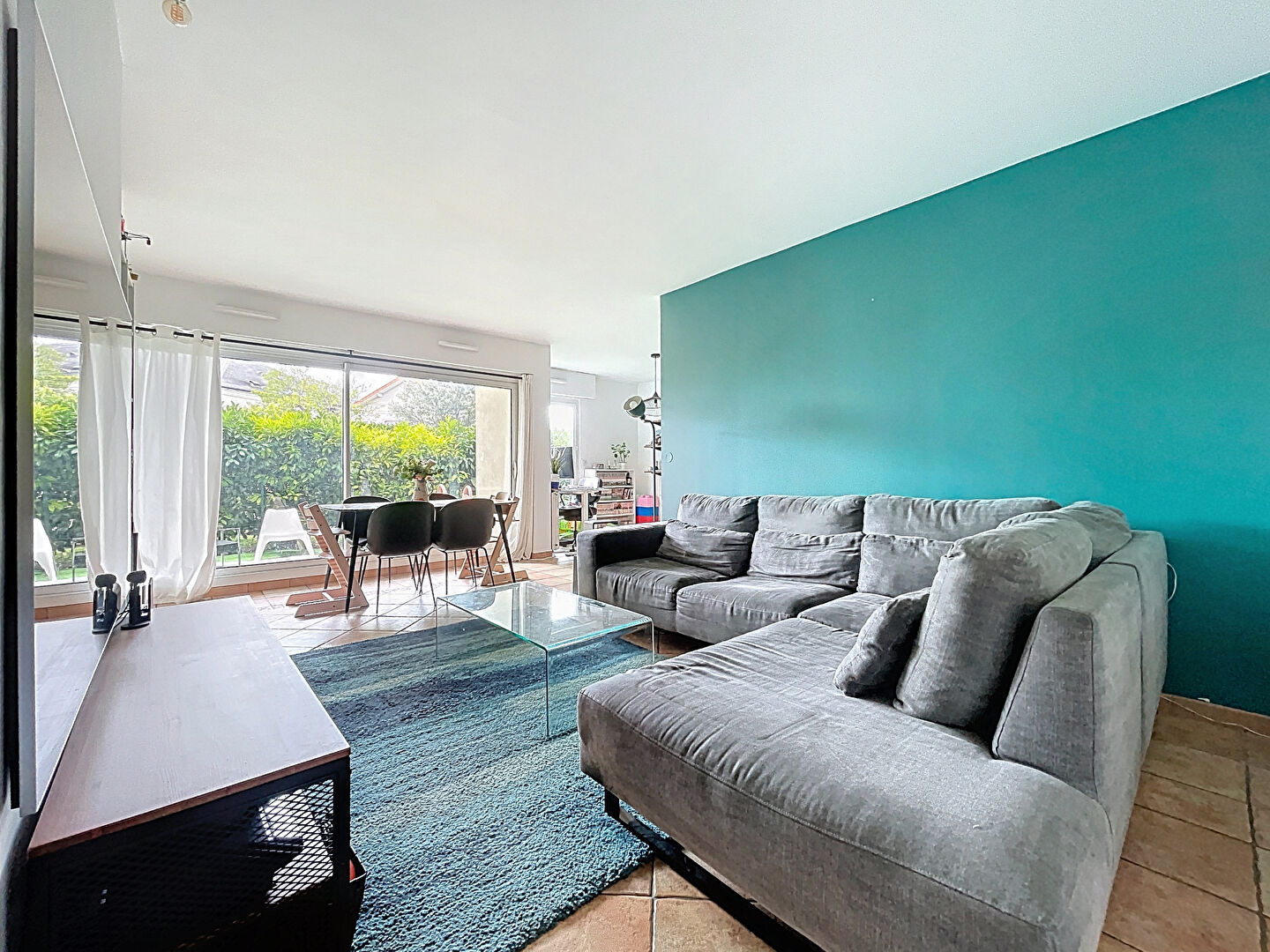Un séjour lumineux ouvrant sur un jardin privatif d'environ 50 m², parfait pour profiter des beaux jours,