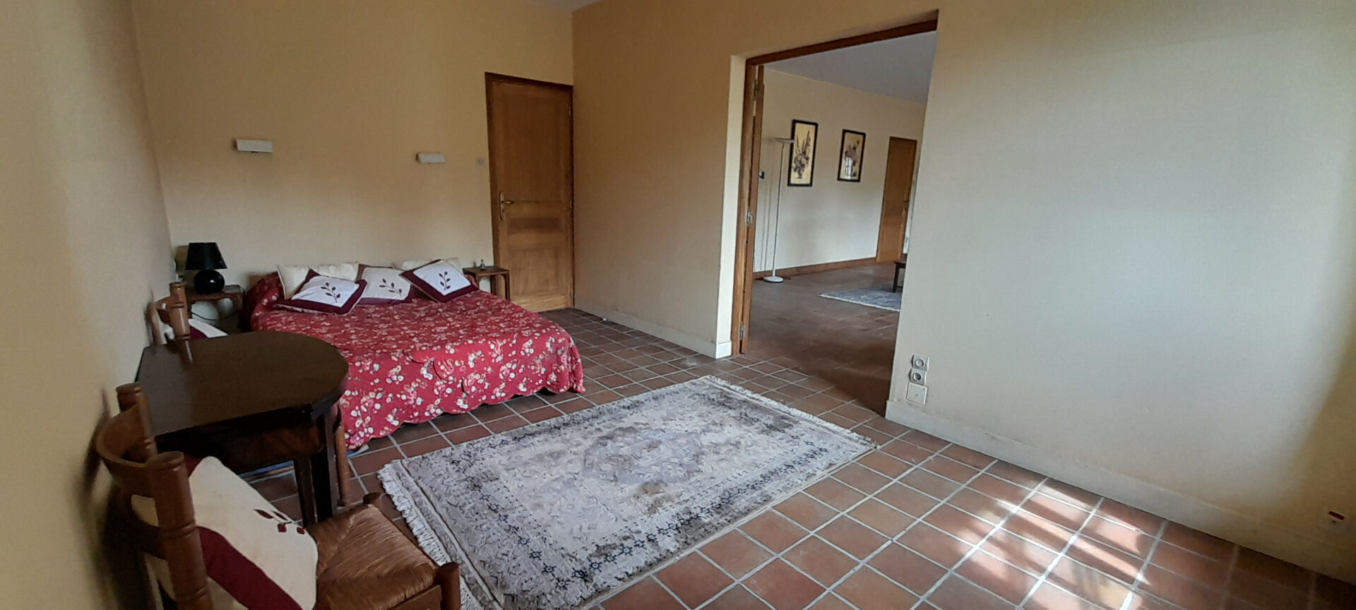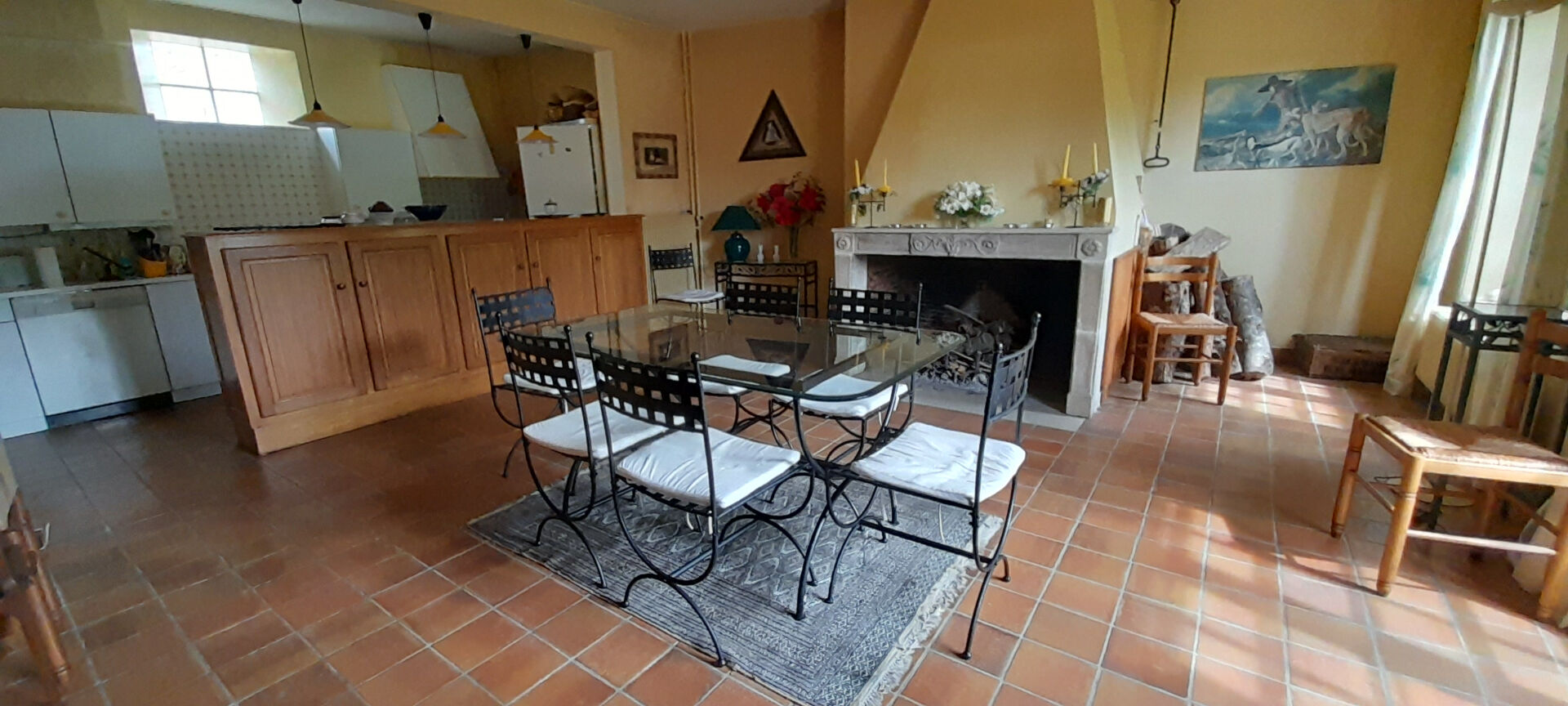 Elle se compose, au rez-de-chaussée, d'un double séjour, d'une cuisine ouverte sur une belle salle à manger avec cheminée, d'une chambre, d'une salle d'eau avec WC et des WC indépendants.