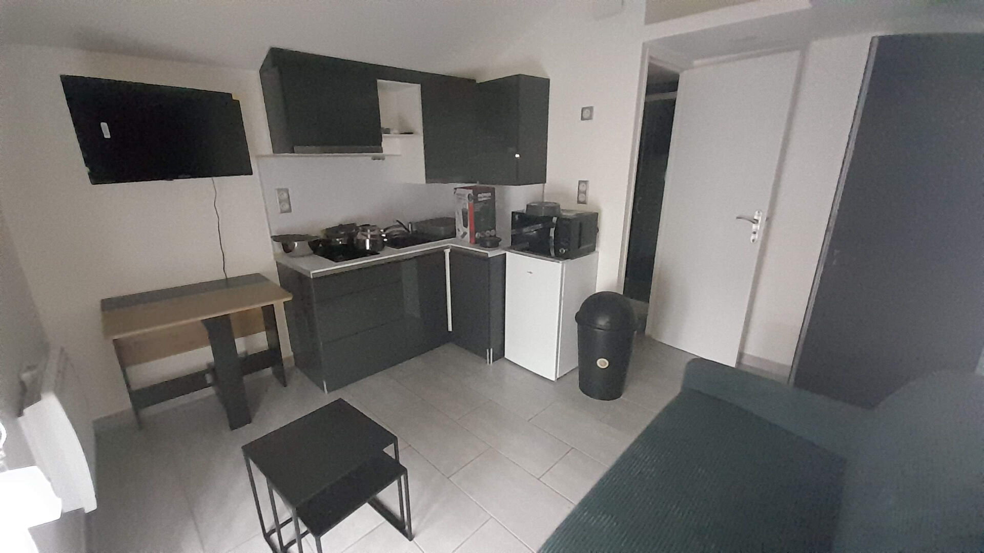 Au premier étage d'une résidence avec un jardin partagé, nous vous proposons un studio équipé avec une pièce avec un coin cuisine, et une salle d'eau avec WC.