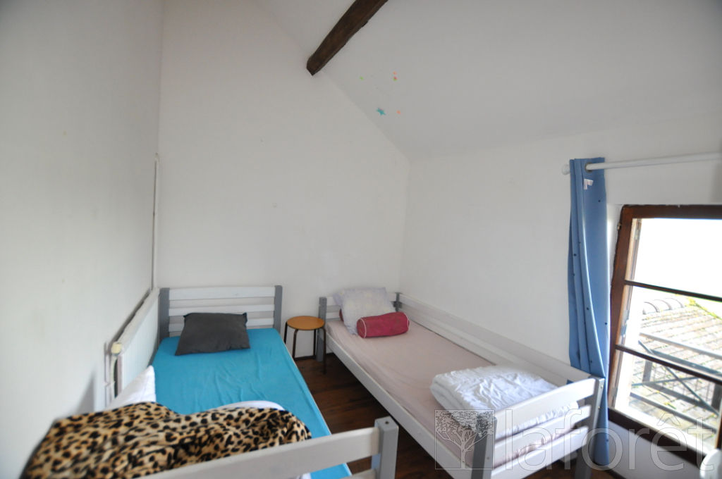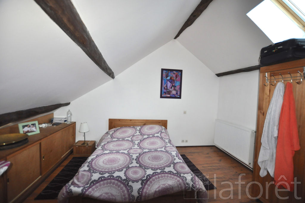 Sous comble, une grande chambre. Cour fermée par portail à l'avant de la maison avec petit cabanon de rangement et possibilité de garer deux voitures en enfilade, à l'arrière de la cour, un jardin en herbe totalement privatif pour un total de 130m² de parcelle. Disponible au 15 février 2026