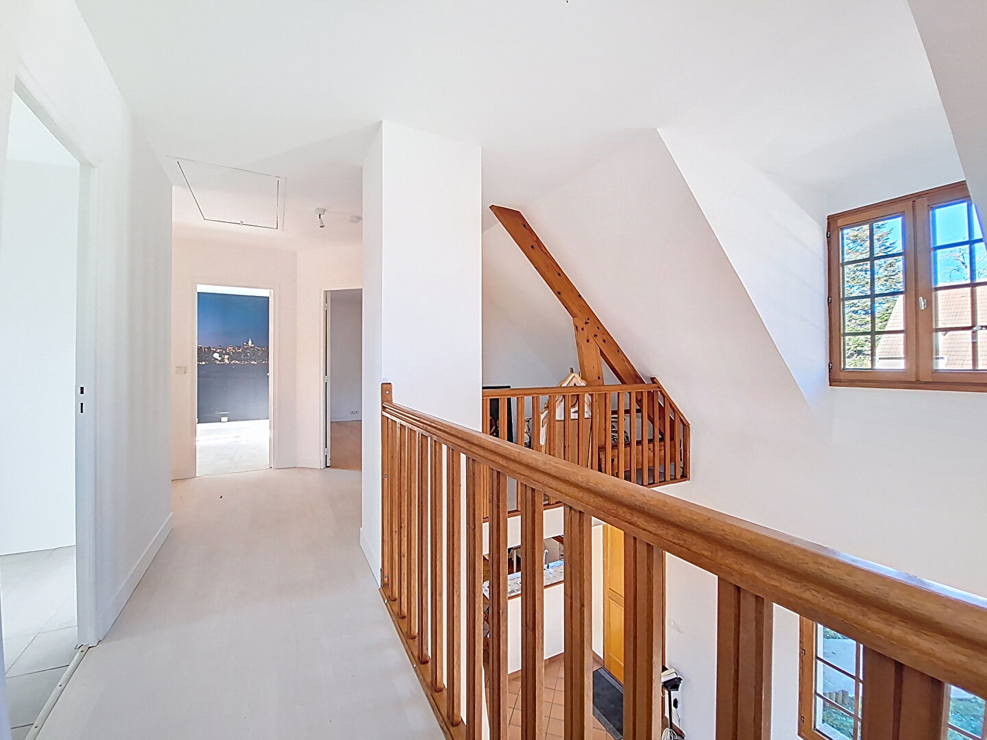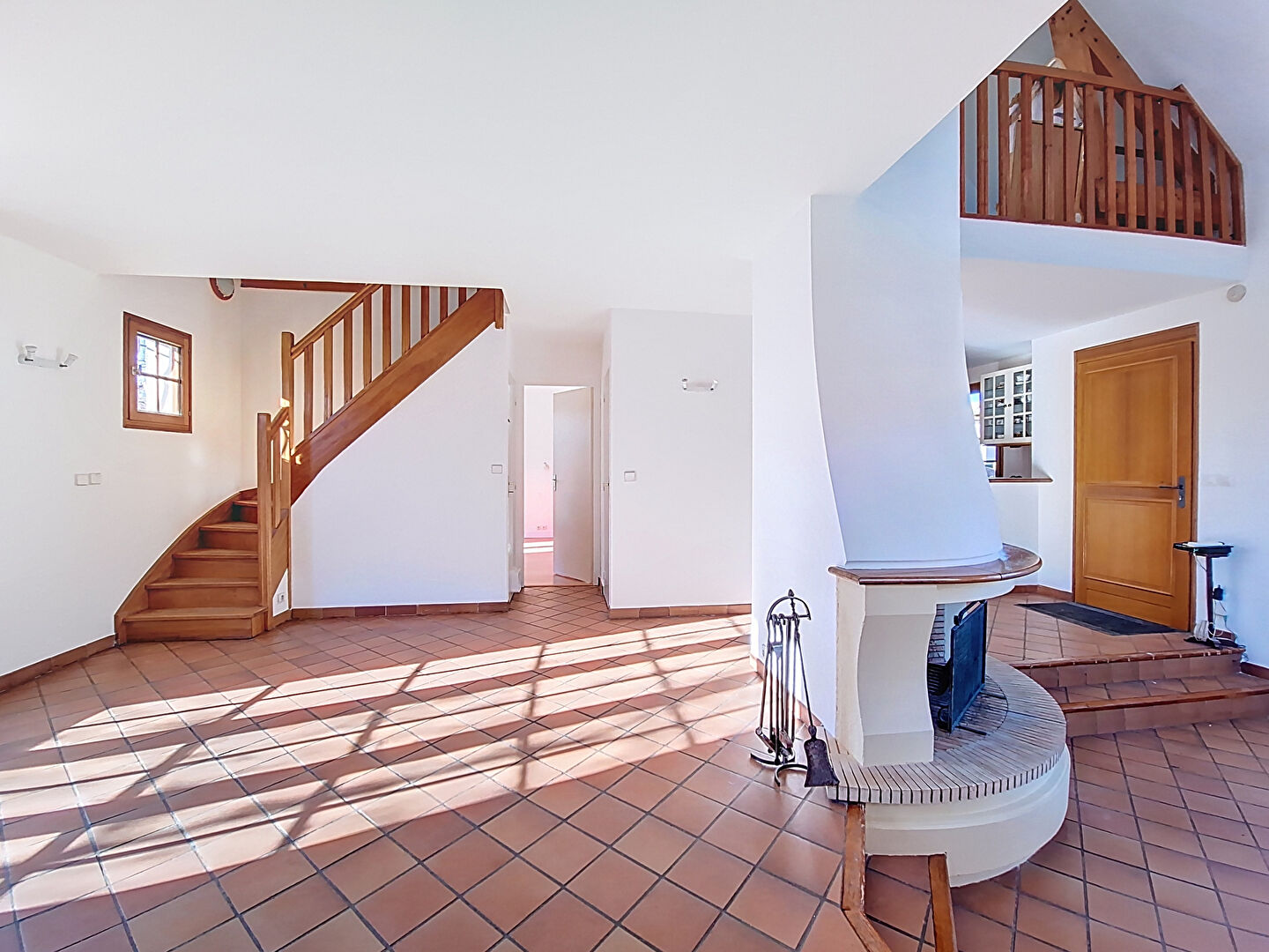 À l'étage : Une mezzanine baignée de lumière mène à deux chambres confortables, un bureau (parfait pour le télétravail) et une seconde salle de bains avec WC. Un grenier complète ce niveau pour vos besoins de stockage.