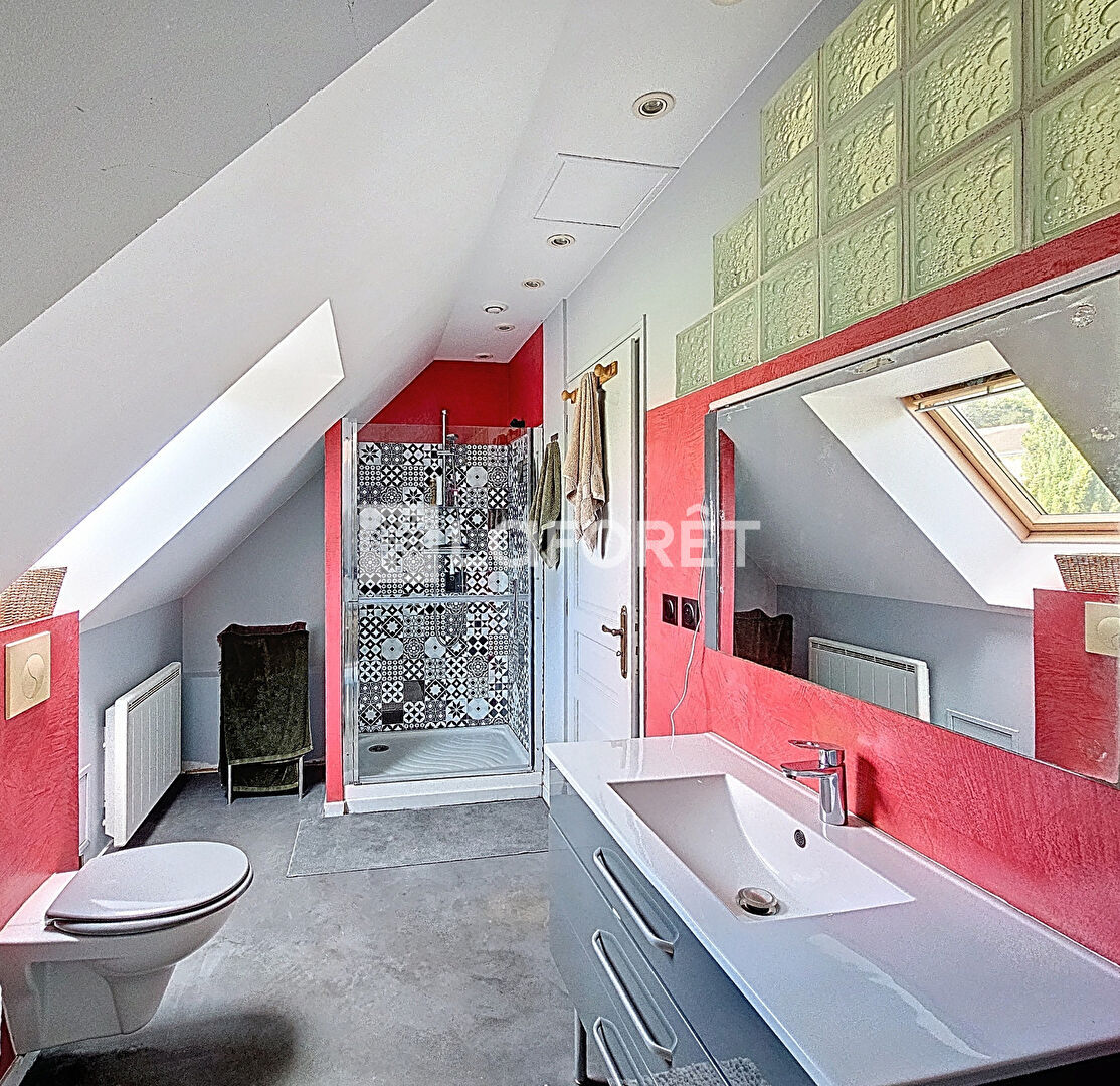 A l'étage, un palier desservant 3 chambres ainsi qu'une salle d'eau avec WC.