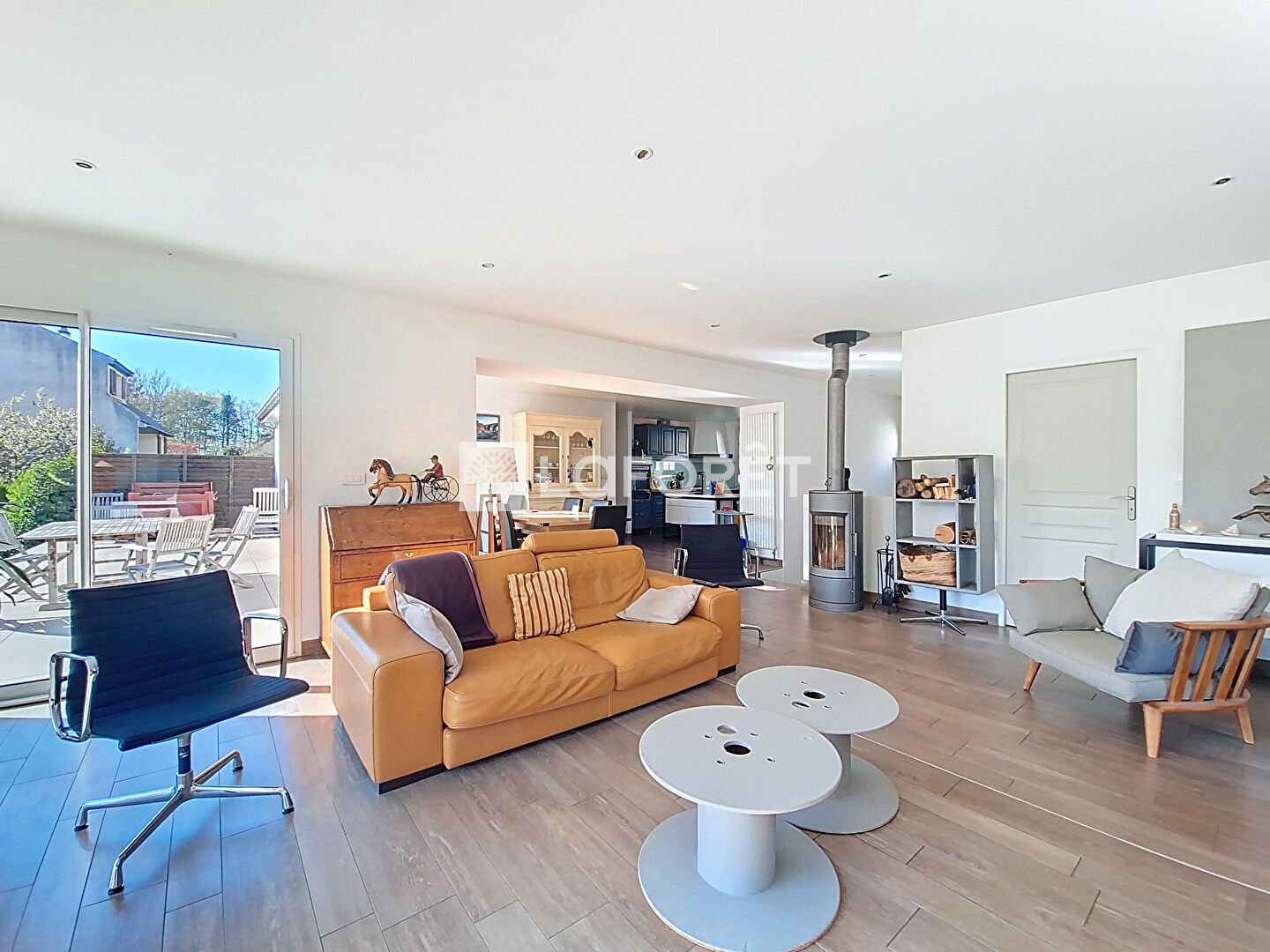 Située à proximité immédiate du centre-ville de Marcoussis, cette charmante maison de plain-pied d'environ 126 m², est édifiée sur un sous-sol total. Elle se compose d'une entrée, d'une belle pièce de vie avec poêle, d'une cuisine ouverte équipée et aménagée, de quatre chambres dont une suite parentale avec salle d'eau, d'une salle de bains et de deux WC. Le sous-sol se compose d'un garage double, d'un atelier, d'une buanderie et d'un bel espace de stockage. De nombreux stationnements sont possibles sur la propriété. La pièce de vie donne accès à une terrasse exposée plein sud de 37 m². La maison a été entièrement rénovée en 2011 (agrandissement, toiture refaite, aménagement intérieur). Aucun travaux à prévoir. Le parc des Célestins et les écoles de Marcoussis sont à deux pas ! Idéale pour une famille ! Maison disponible fin aout 2026.