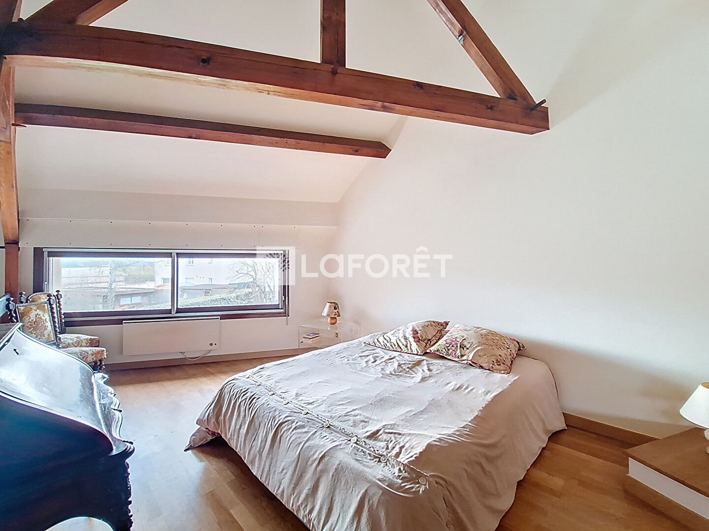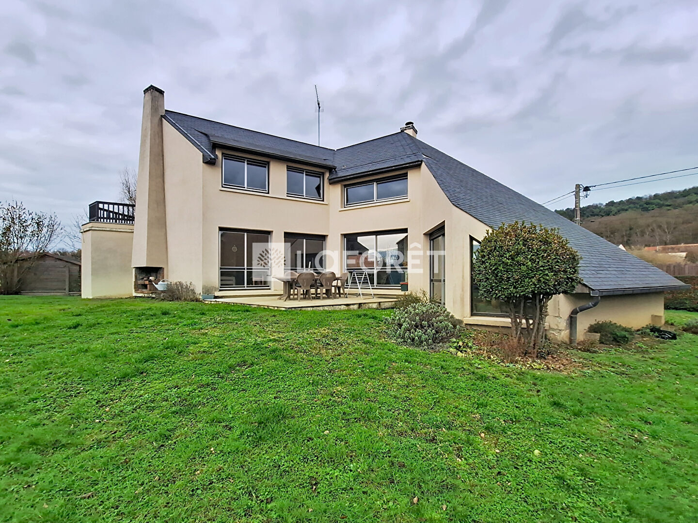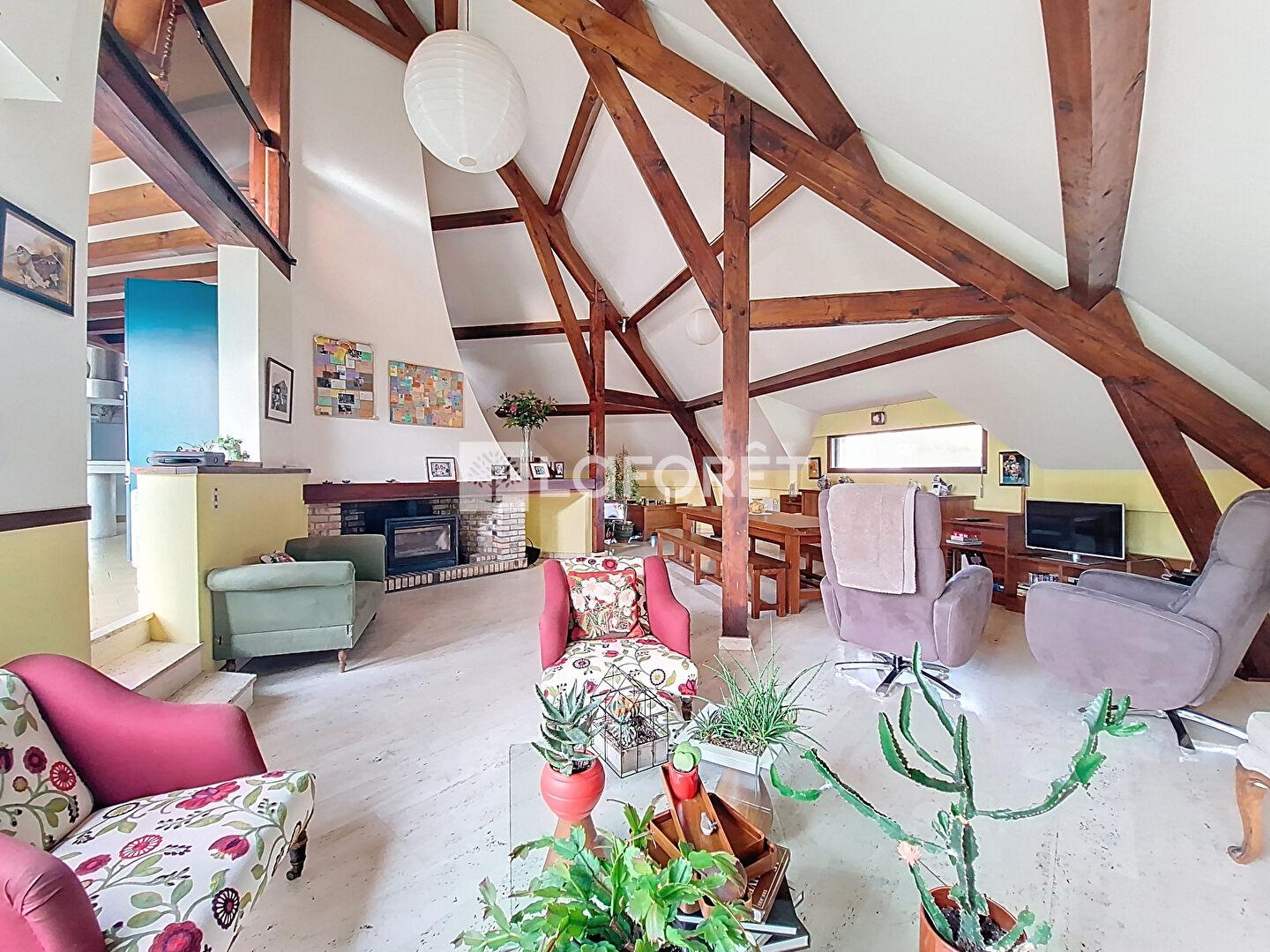 Au rez-de-chaussée : Entrée cathédrale desservant une pièce de vie lumineuse agrémentée d'une cheminée, avec accès à la terrasse et au jardin plein sud, une cuisine indépendante en demi- niveau, deux chambres, un bureau, une salle d'eau, un wc.