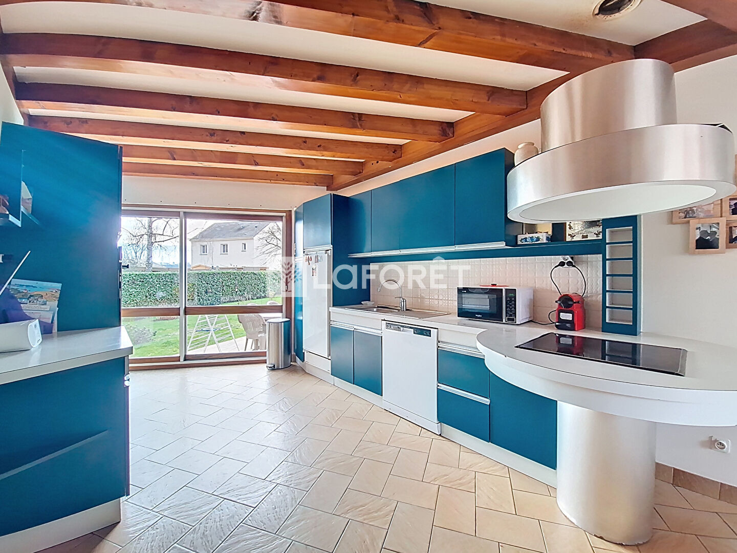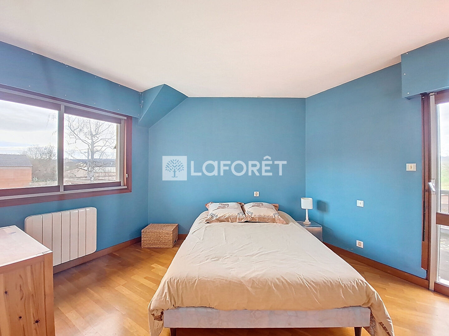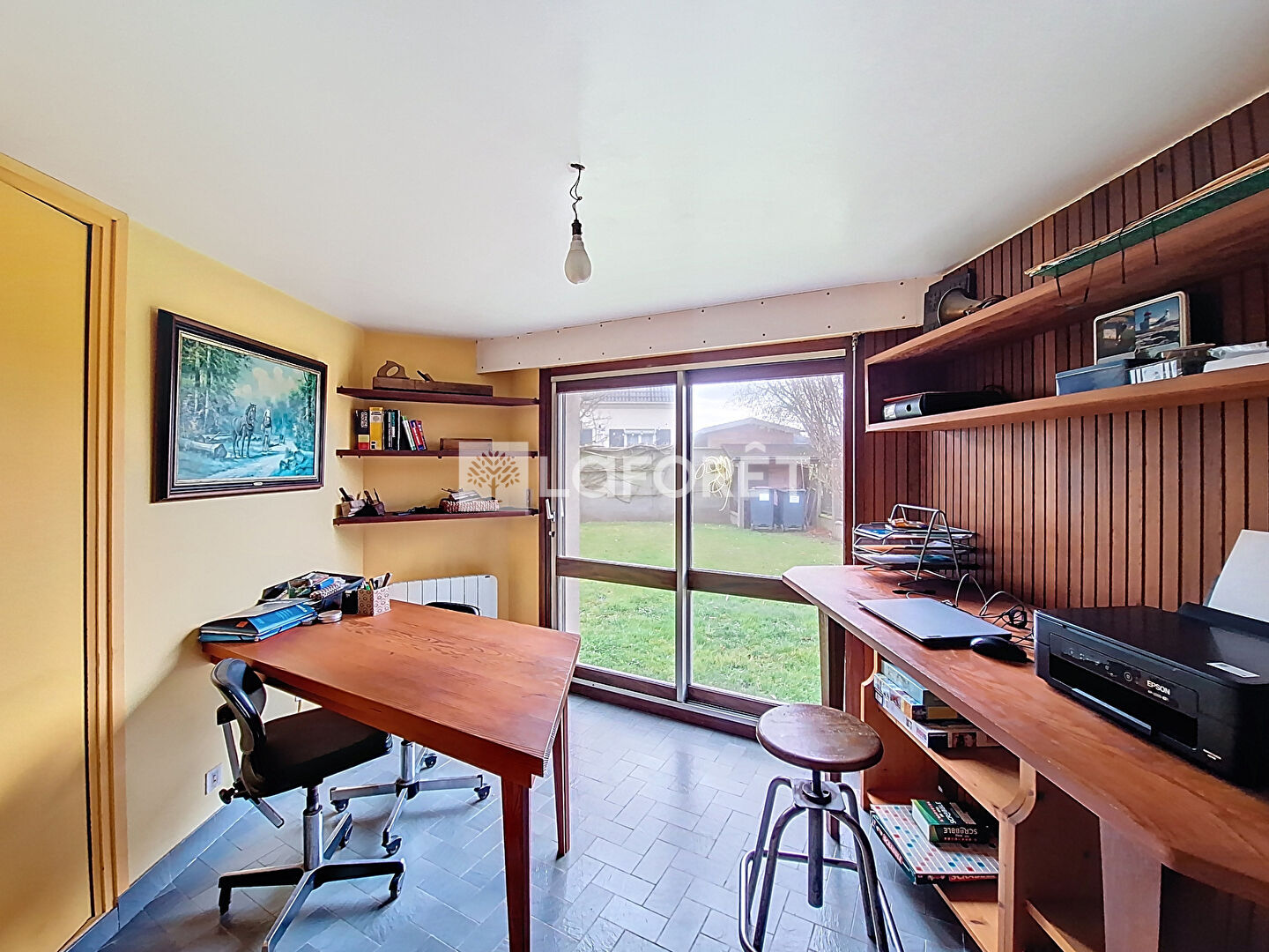 Au rez-de-chaussée : Entrée cathédrale desservant une pièce de vie lumineuse agrémentée d'une cheminée, avec accès à la terrasse et au jardin plein sud, une cuisine indépendante en demi- niveau, deux chambres, un bureau, une salle d'eau, un wc.