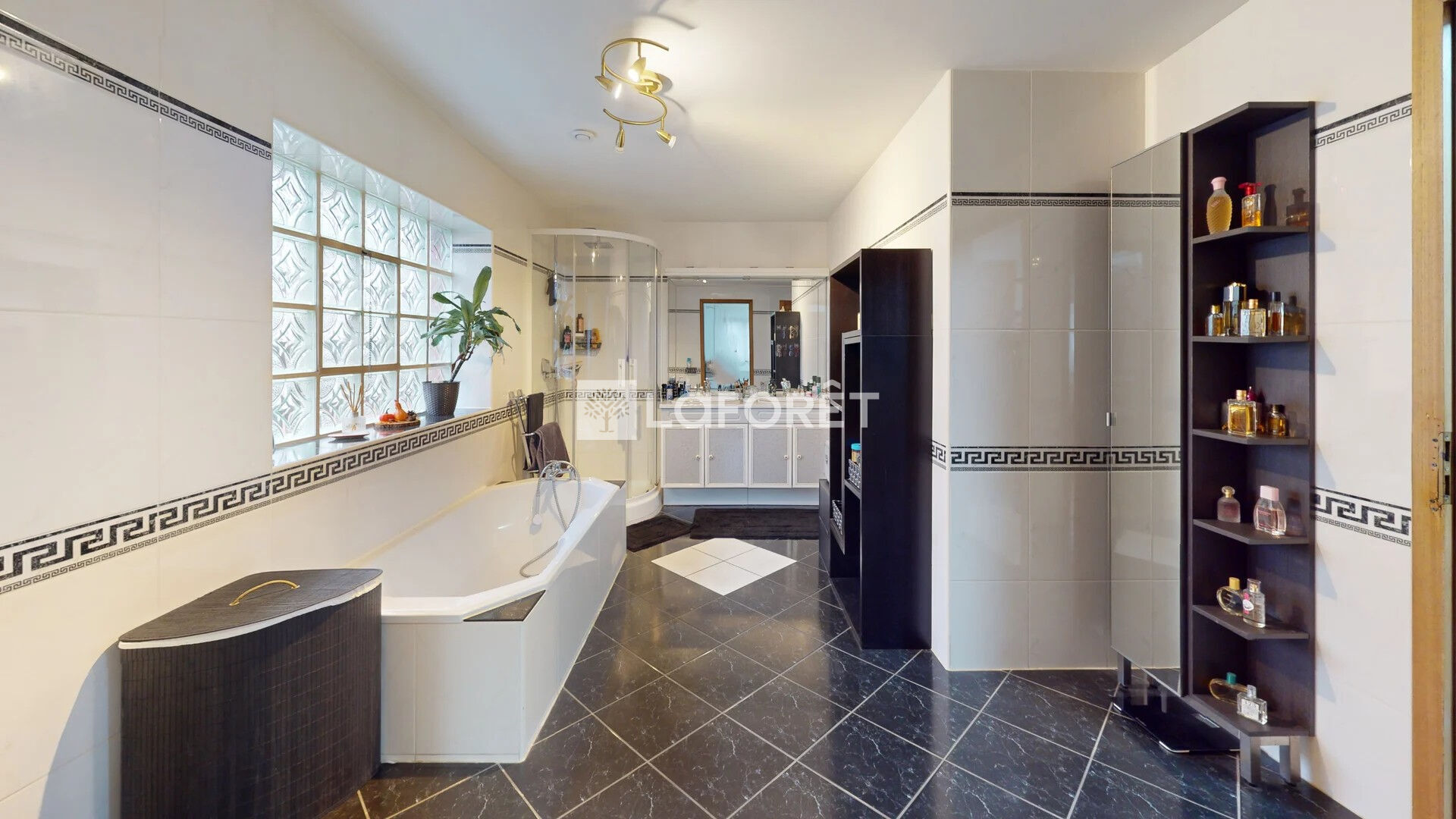 - Une chambre parentale de 14,57 m2 avec accès directe à la salle de bain de 11.90 m2 incluant baignoire et douche ainsi qu'un WC.