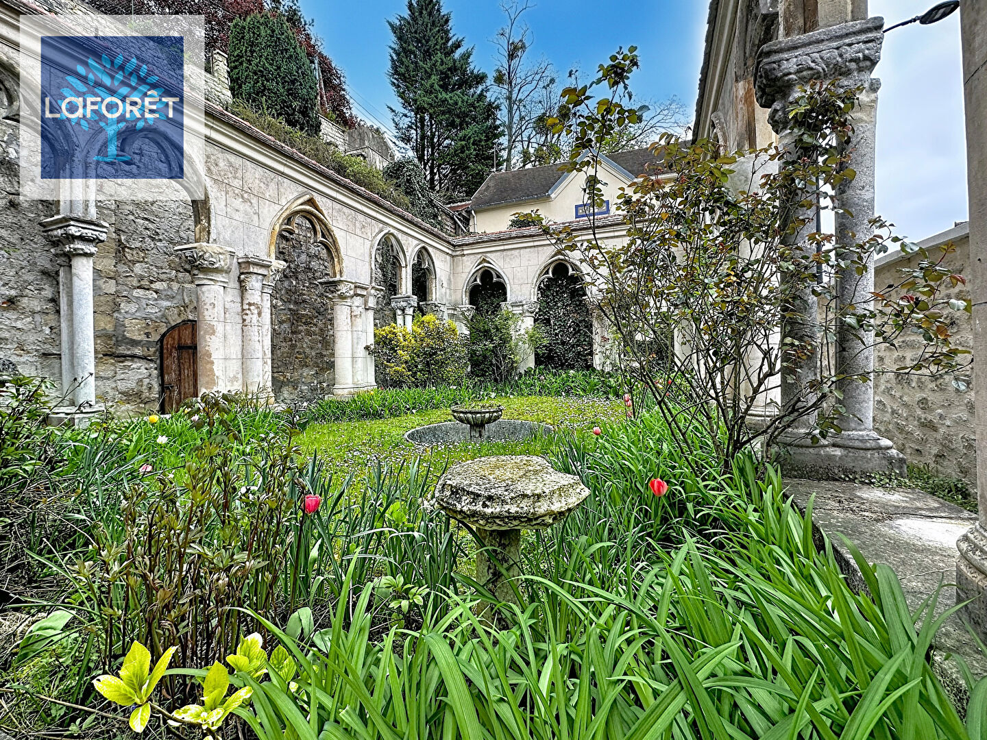 Elle s'épanouit sur un jardin paysagé en restanques d'environ 840 m². Véritable pièce maîtresse, un cloître datant de la fin du XIIIe siècle, rapporté des Pyrénées centrales et remonté sur place en 1924, confère au lieu une dimension exceptionnelle. Ses arcades ogivales, colonnes et chapiteaux en marbre des Pyrénées entourent un jardin à ciel ouvert, offrant un cadre rare et inspirant.