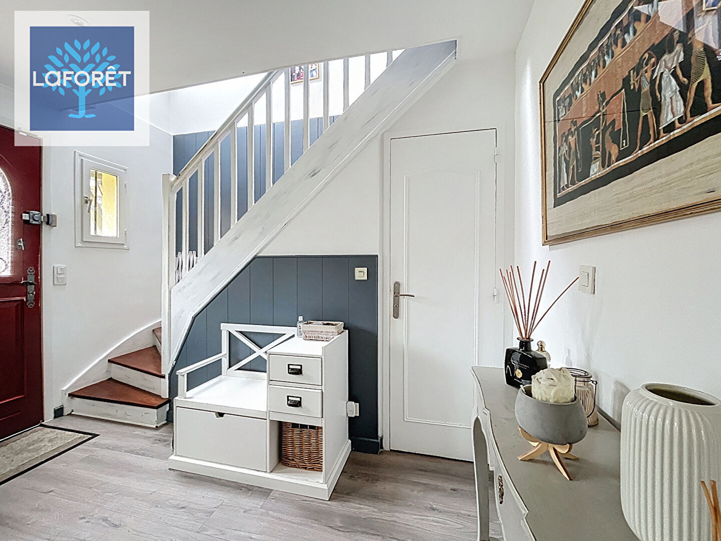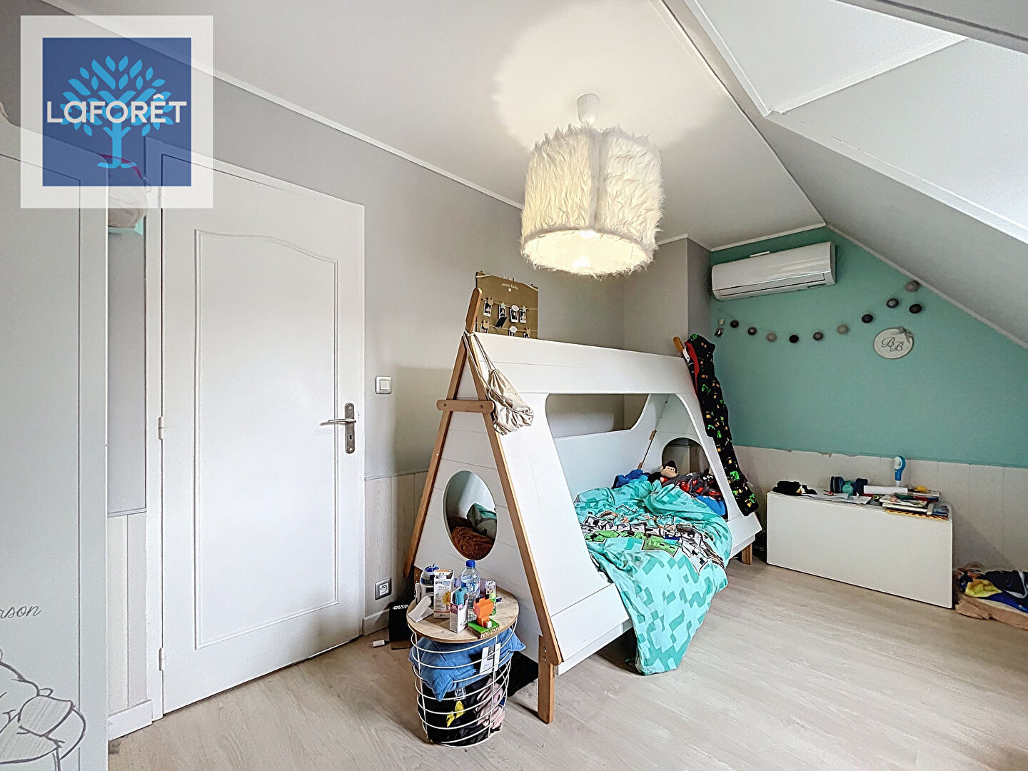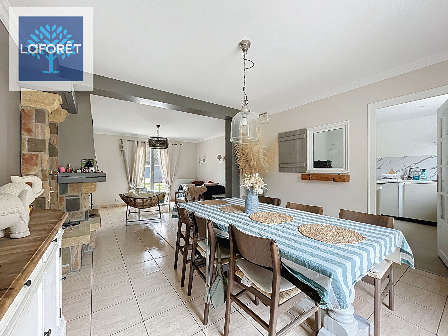 Maison individuelle édifiée sur un terrain de 505 m² offrant au rdc : une entrée avec placards, une pièce de vie avec cheminée insert, une cuisine équipée et un wc.