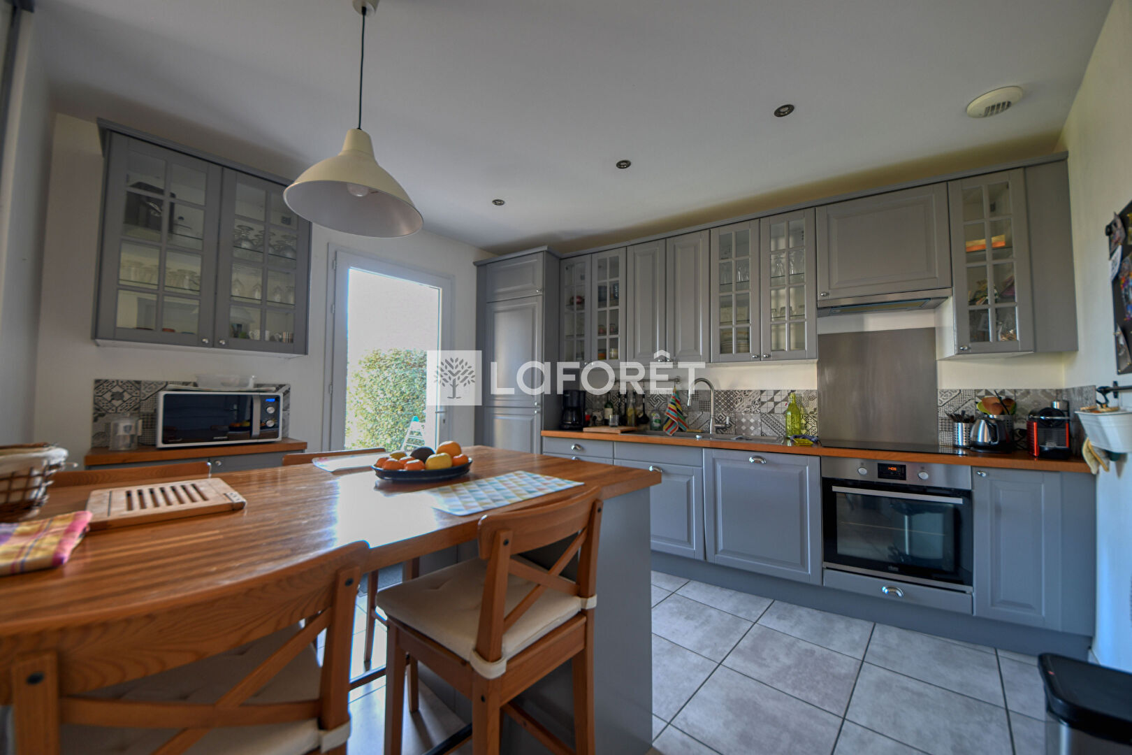 Elle se compose de trois belles chambres, une salle de bains avec toilettes, une cuisine aménagée et équipée et un wc séparé. Vous disposez également d'une belle pièce de vie lumineuse donnant sur une agréable terrasse extérieure. Un garage d'environ 28 m² vient compléter la maison, le tout sur une parcelle arborée de 300 m².