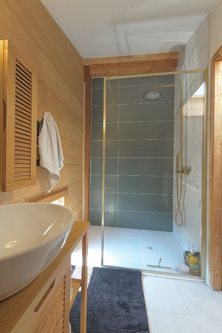 La maison dispose d'un immense séjour d'environ 49m² avec un plafond cathédrale de plus de 5m, une cuisine ouverte entièrement équipée, de quatre chambres spacieuses dont deux de plain-pied, d'une salle de bains et une salle d'eau, une buanderie ainsi que deux wc.
