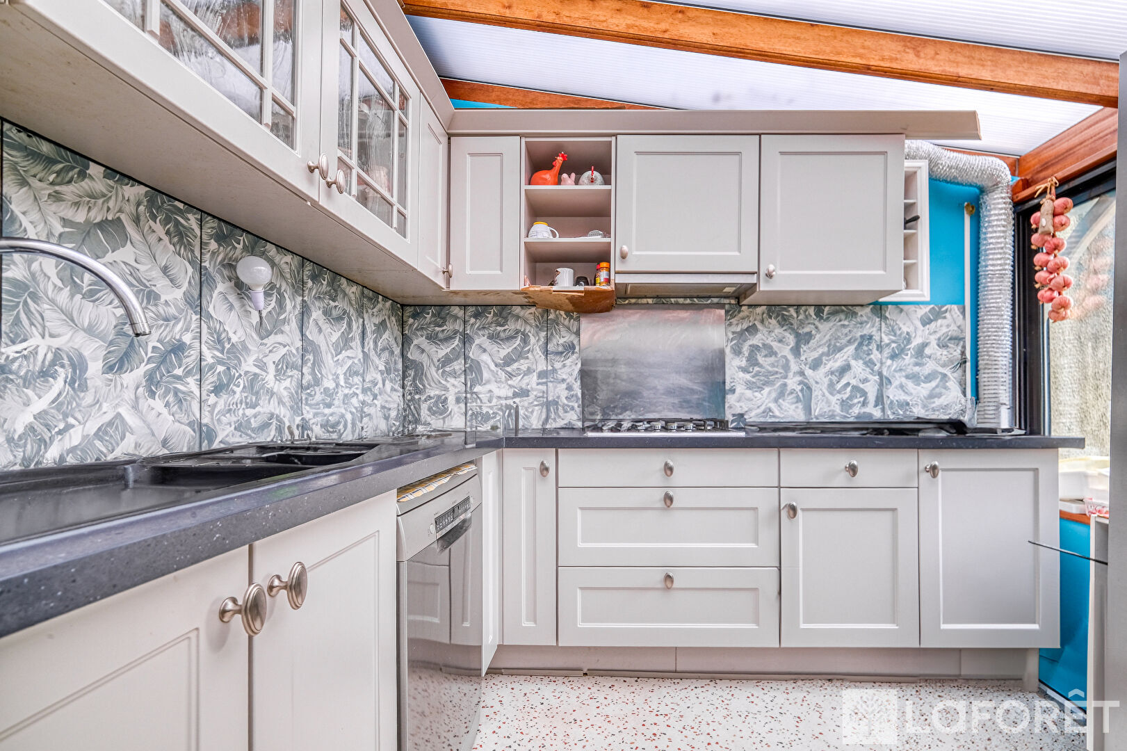 Premier niveau : triple séjour traversant avec cuisine équipée, une chambre, WC, accès direct à la terrasse et au jardinet arrière, parfait pour les moments de convivialité.