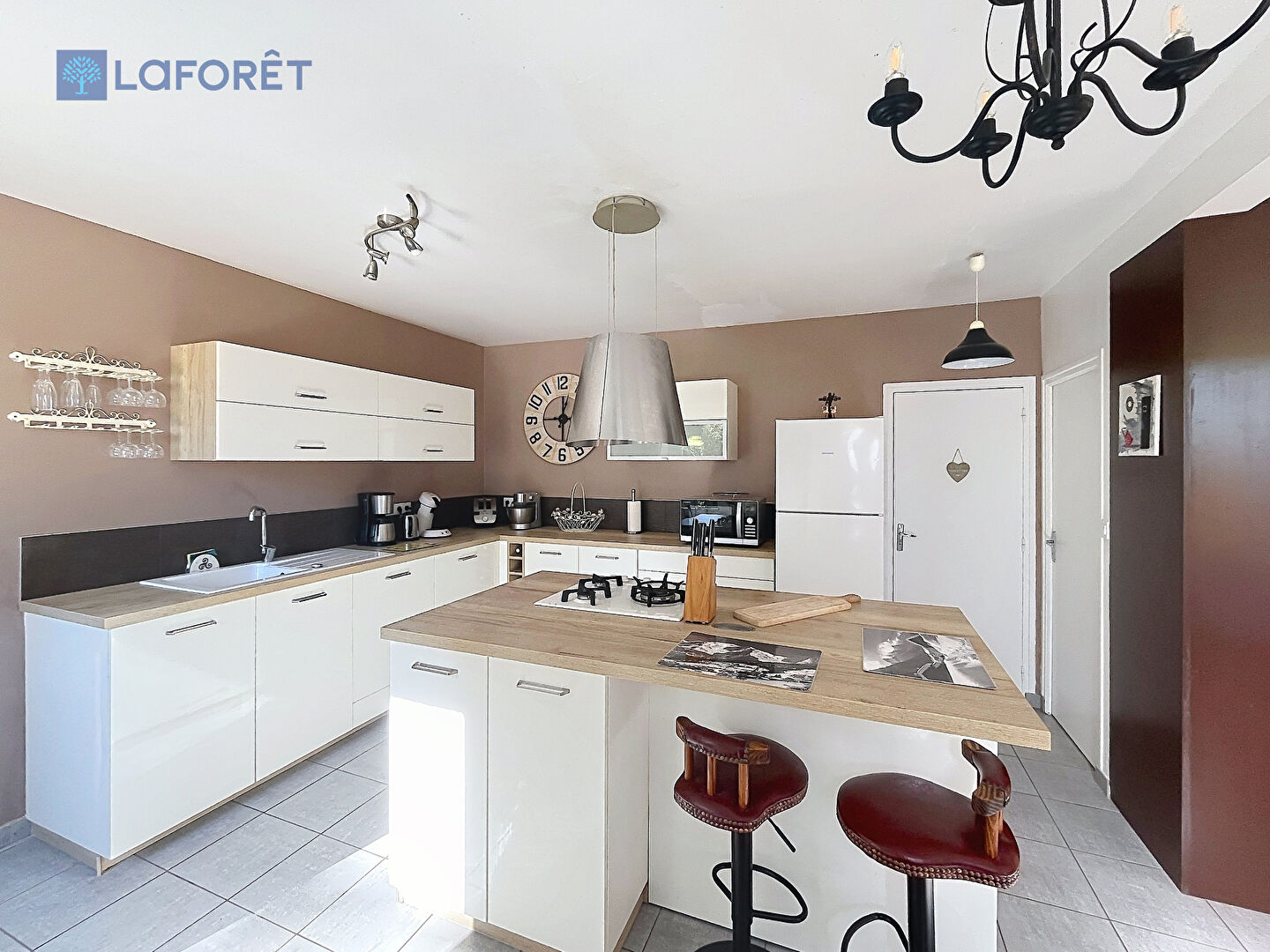 Au rez-de-chaussée, vous y trouverez un espace cuisine aménagé et équipé de plus de 20m², un séjour/salle à manger avec poële à bois de plus de 30m², une salle d'eau et un wc.