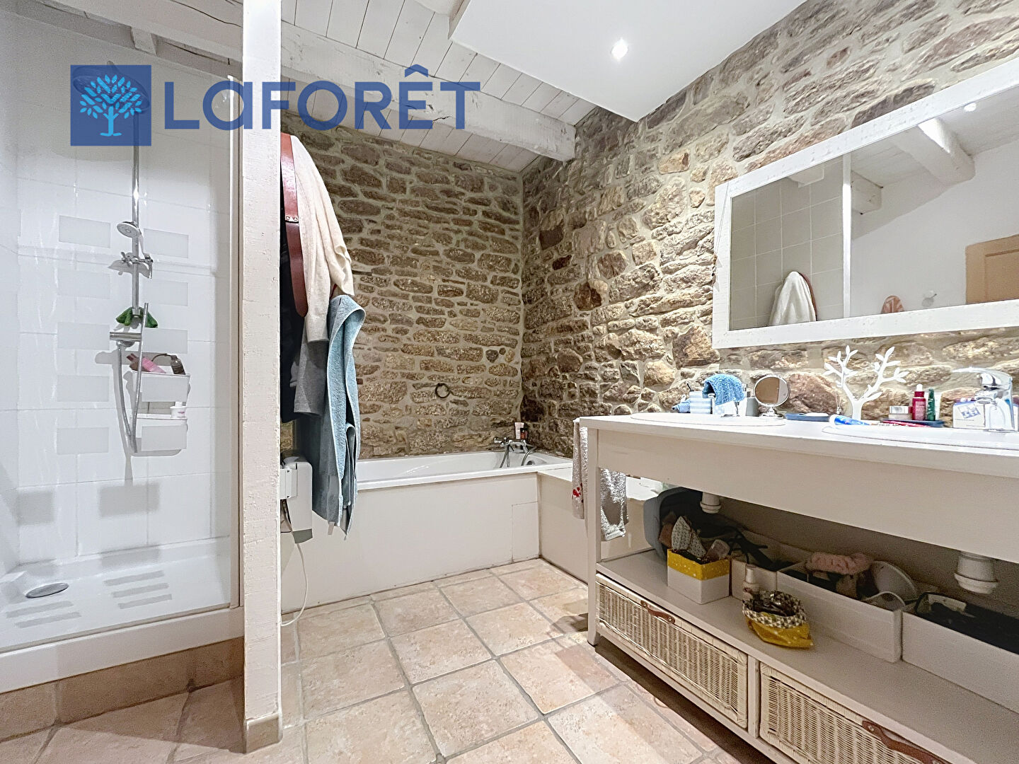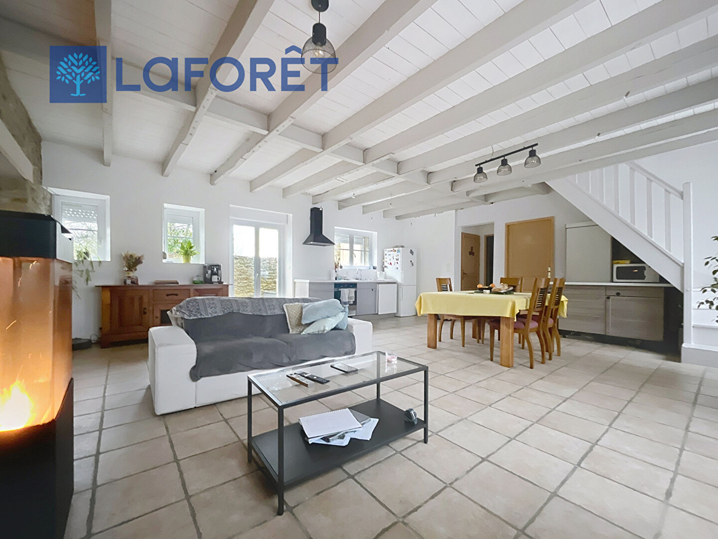 Elle offre au rez-de-chaussée : entée sur séjour agrémenté d'un poêle à granulés, cuisine ouverte aménagée et équipée sur terrasse, une pièce avec un bureau en mezzanine, une chambre, salle d'eau avec baignoire et douche, un WC indépendant.