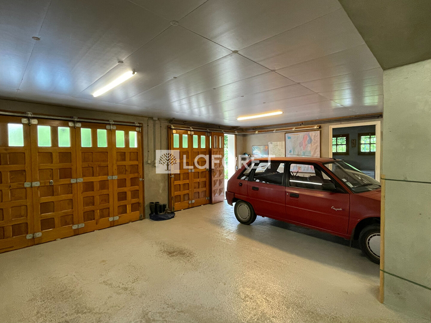Sous-sol complet (150m²env) comprenant un garage double (41m²), un bûcher , une chaufferie, une buanderie , un débarras, 2 caves, un atelier, un WC.