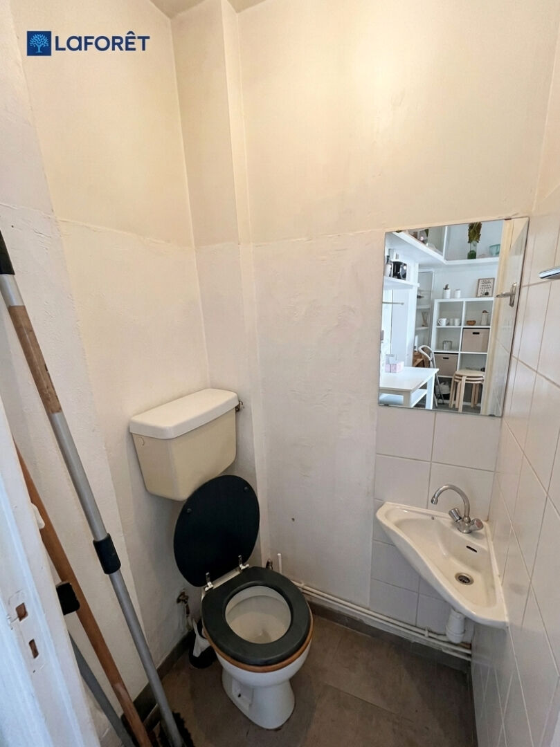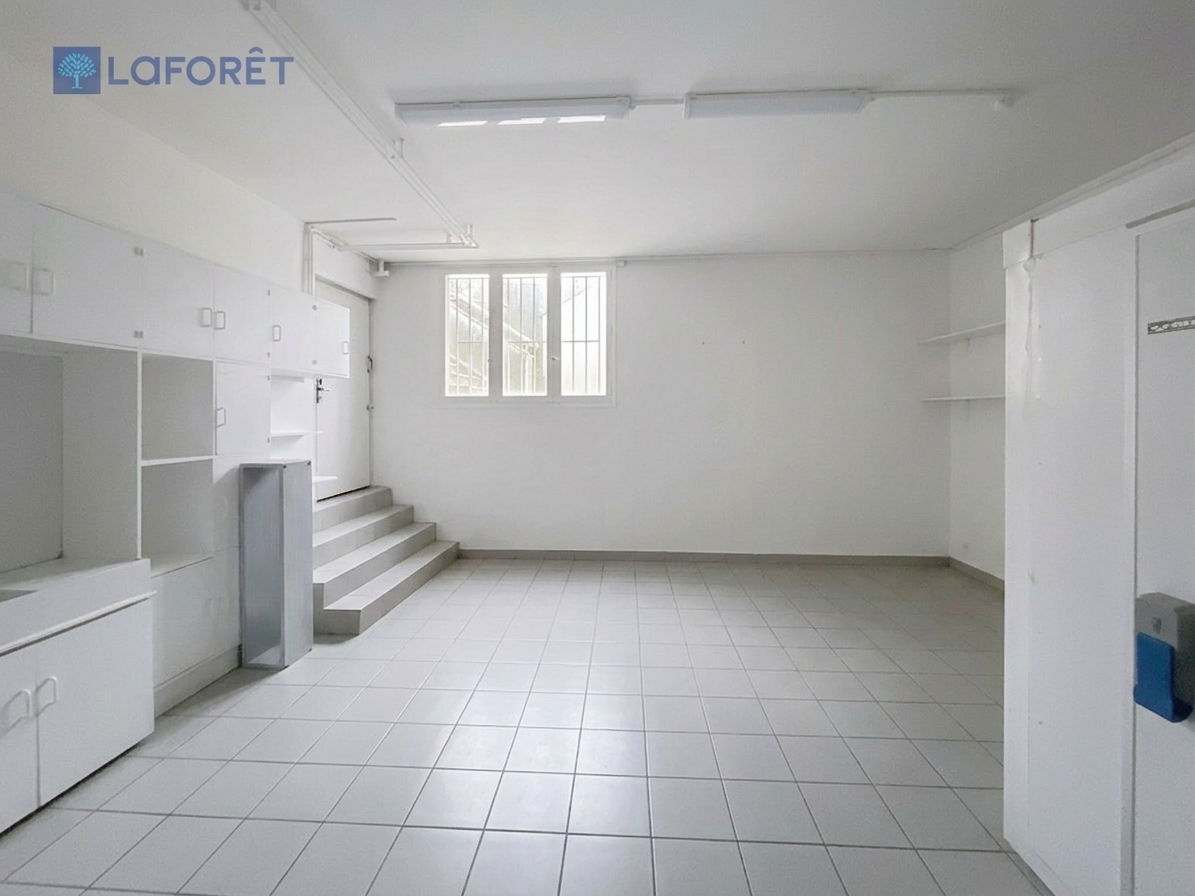 - Arrière-boutique : Espace technique avec rangements intégrés, point d'eau (évier), WC et zone de stockage avec chambre froide accessible par quelques marches.