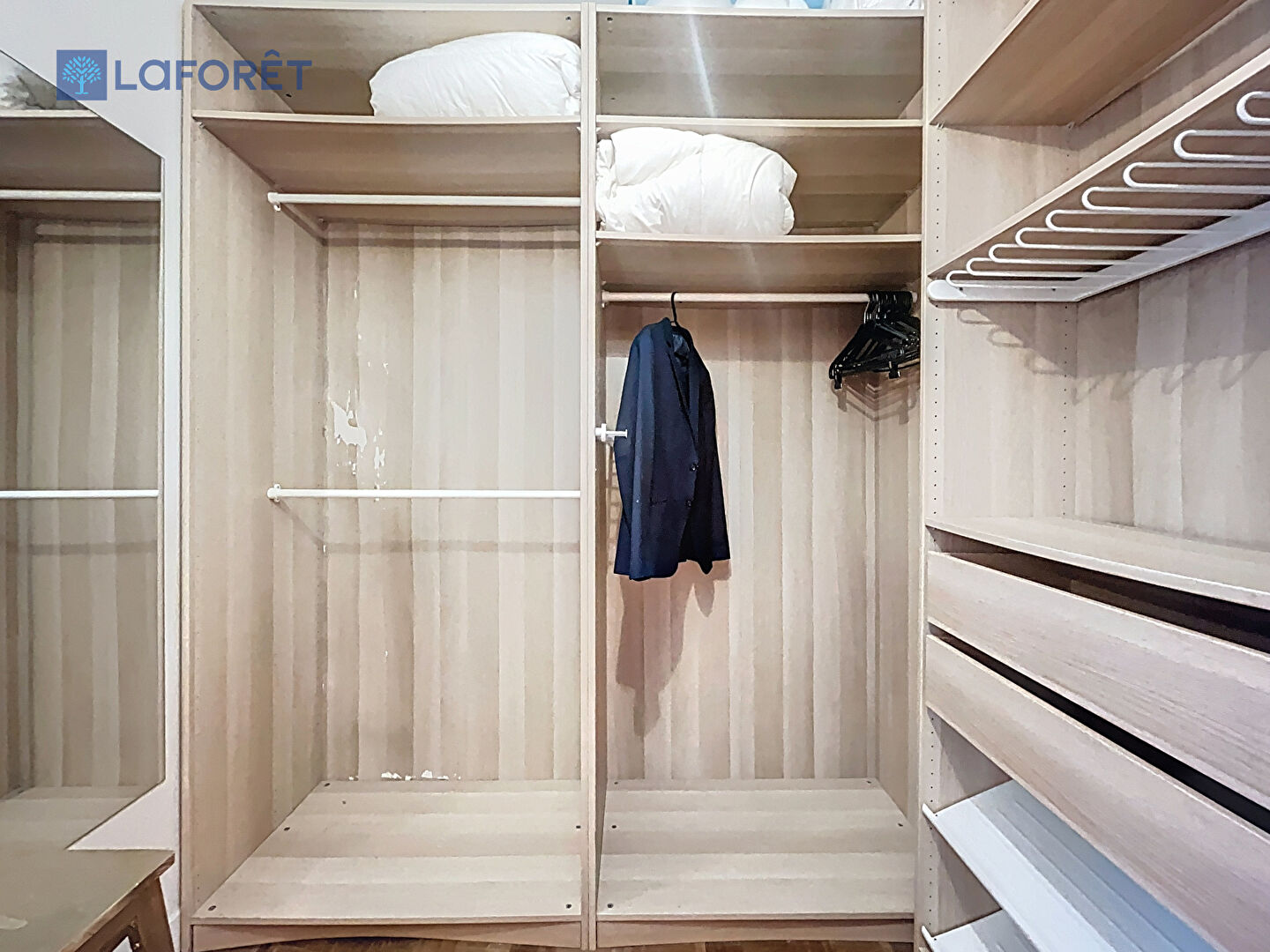 Il se compose d'une entrée, d'une spacieuse pièce de vie, d'une cuisine aménagée et entièrement équipée (plaque gaz de ville, four, lave-vaisselle), d'une salle de bains récente avec double vasque, fenêtre et machine à laver, de WC séparés, ainsi que d'une grande chambre avec dressing.