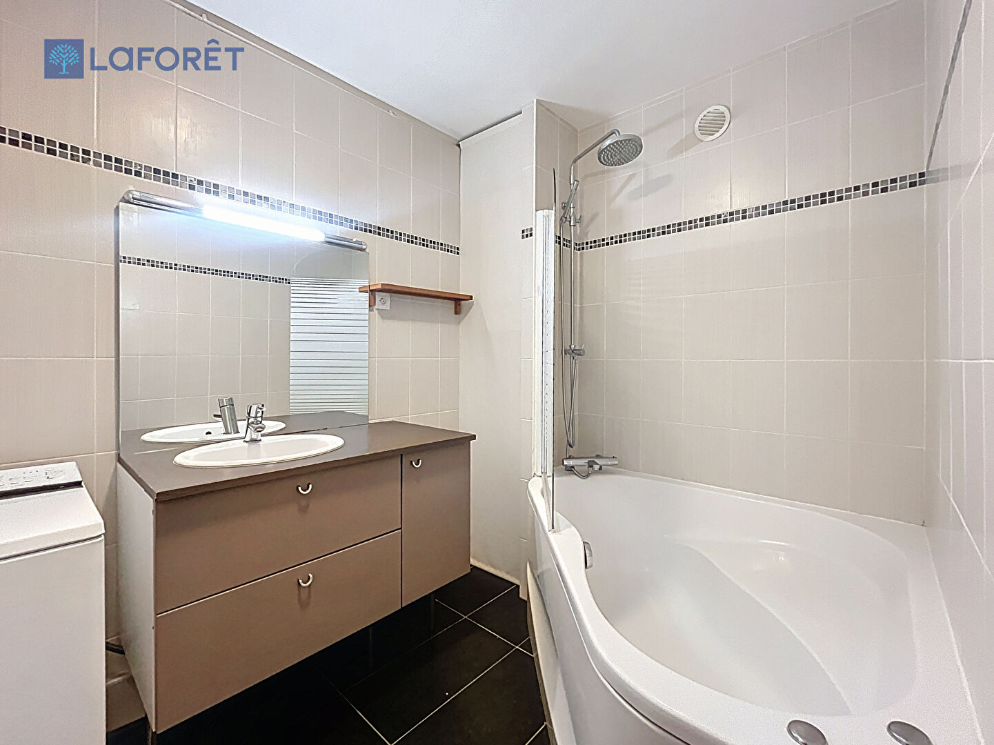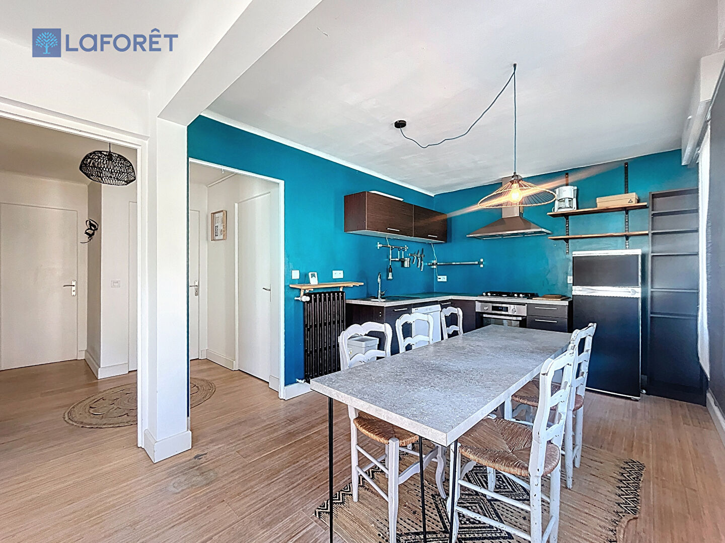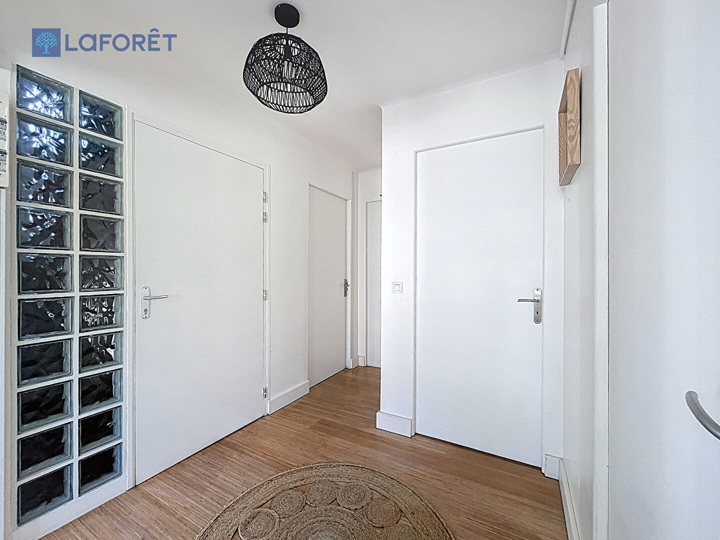L'appartement se compose d'une entrée, d'un séjour lumineux avec cuisine aménagée et équipée, ouvrant sur un balcon orienté Ouest. Il comprend également deux chambres spacieuses et une salle de bains.