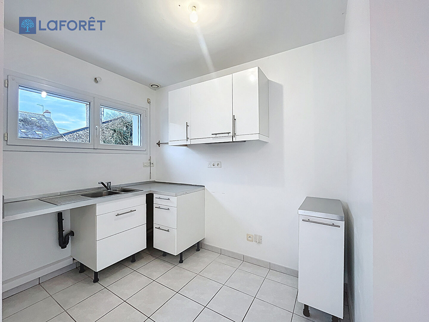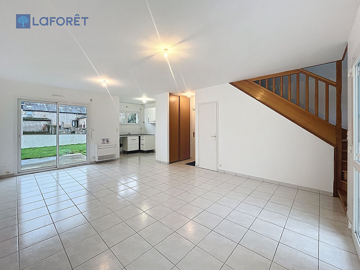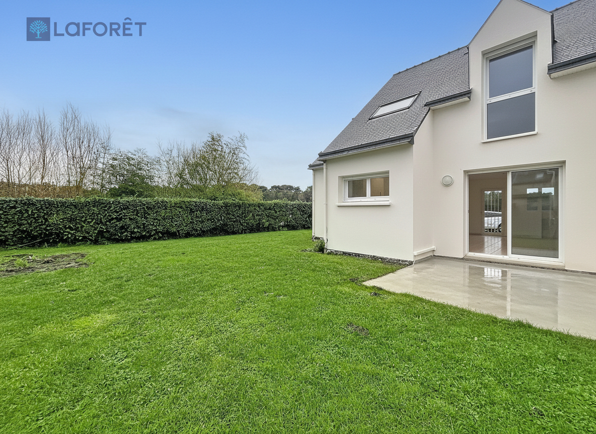 Elle se compose, au rez-de-chaussée, d'une pièce de vie lumineuse ouverte sur une cuisine non équipée, ainsi que d'un WC indépendant. À l'étage, un dégagement dessert trois chambres, dont une avec rangements, et une salle de bains avec WC.
