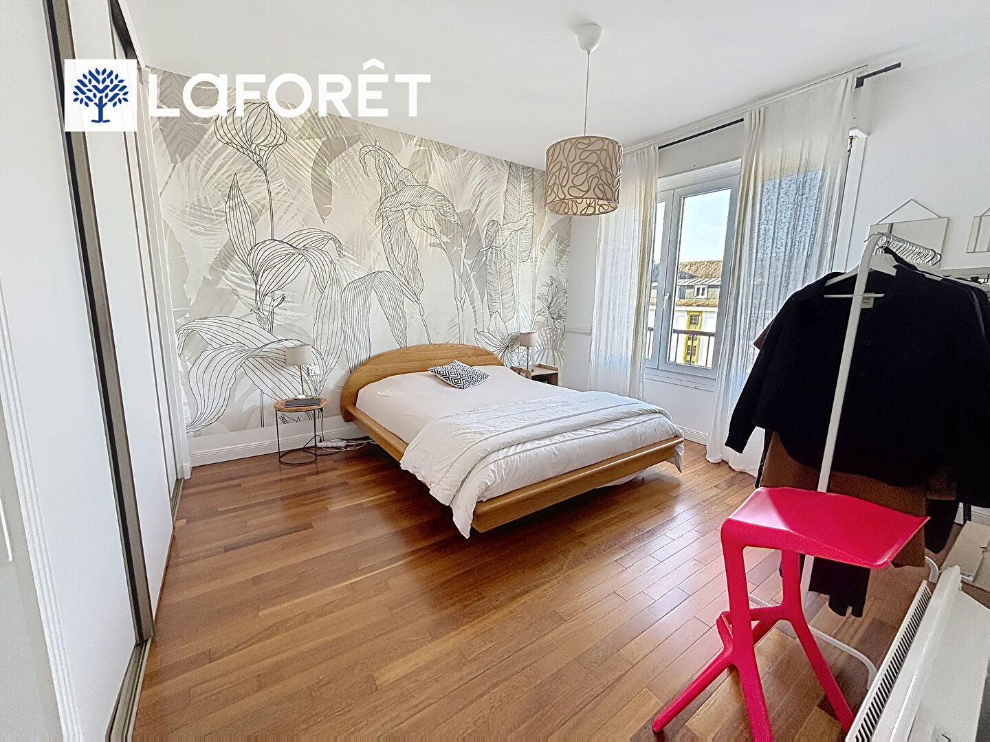 L'appartement s'ouvre sur une entrée avec rangements ; la pièce de vie est spacieuse et très lumineuse, offrant de beaux volumes. La cuisine est aménagée et équipée (four traditionnel, four vapeur, micro-ondes, machine à café intégrée, plaque induction, hotte, lave-vaisselle, réfrigérateur). Deux belles chambres disposent de placards intégrés, une buanderie, la salle de bains est moderne et les WC sont séparés. La luminosité constante et la configuration optimisée en font une résidence principale confortable ou un bien à fort potentiel locatif.