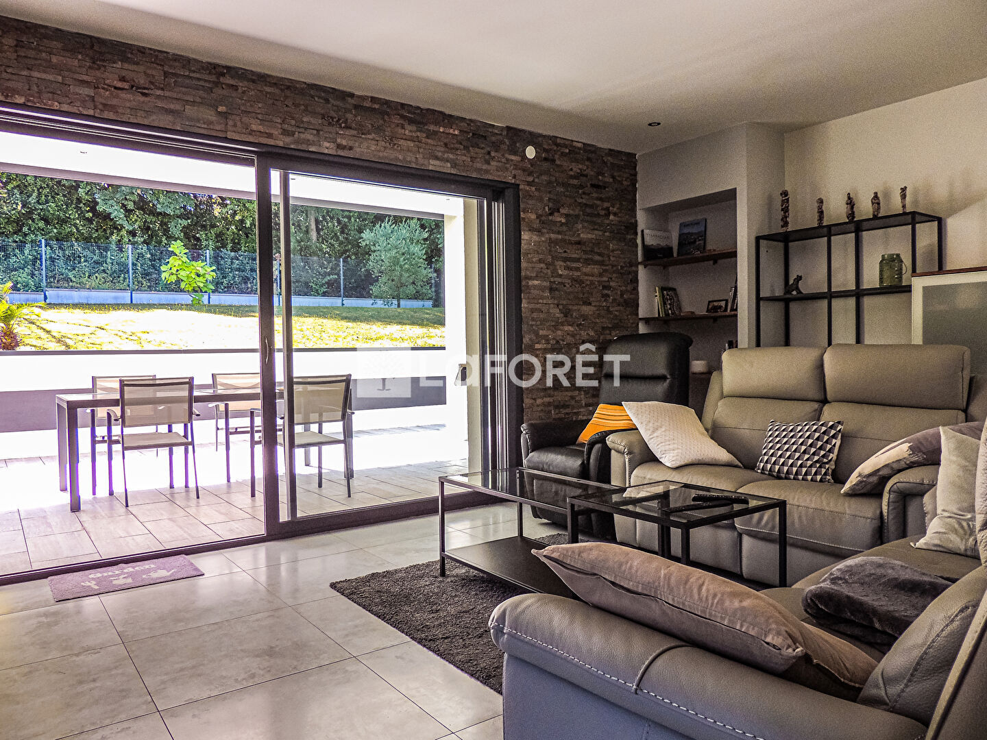 Au rez-de-chaussée, vous trouverez une entrée desservant une chambre, des WC indépendants et la pièce de vie. Celle-ci se compose d'une cuisine fonctionnelle avec des matériaux de qualité, ouverte sur un double séjour de presque 50 m², baignée de lumière grâce à son patio et à de grandes baies vitrées offrant un accès à l'extérieur. La suite parentale comprend une chambre, une salle d'eau, un dressing et un accès à la terrasse.