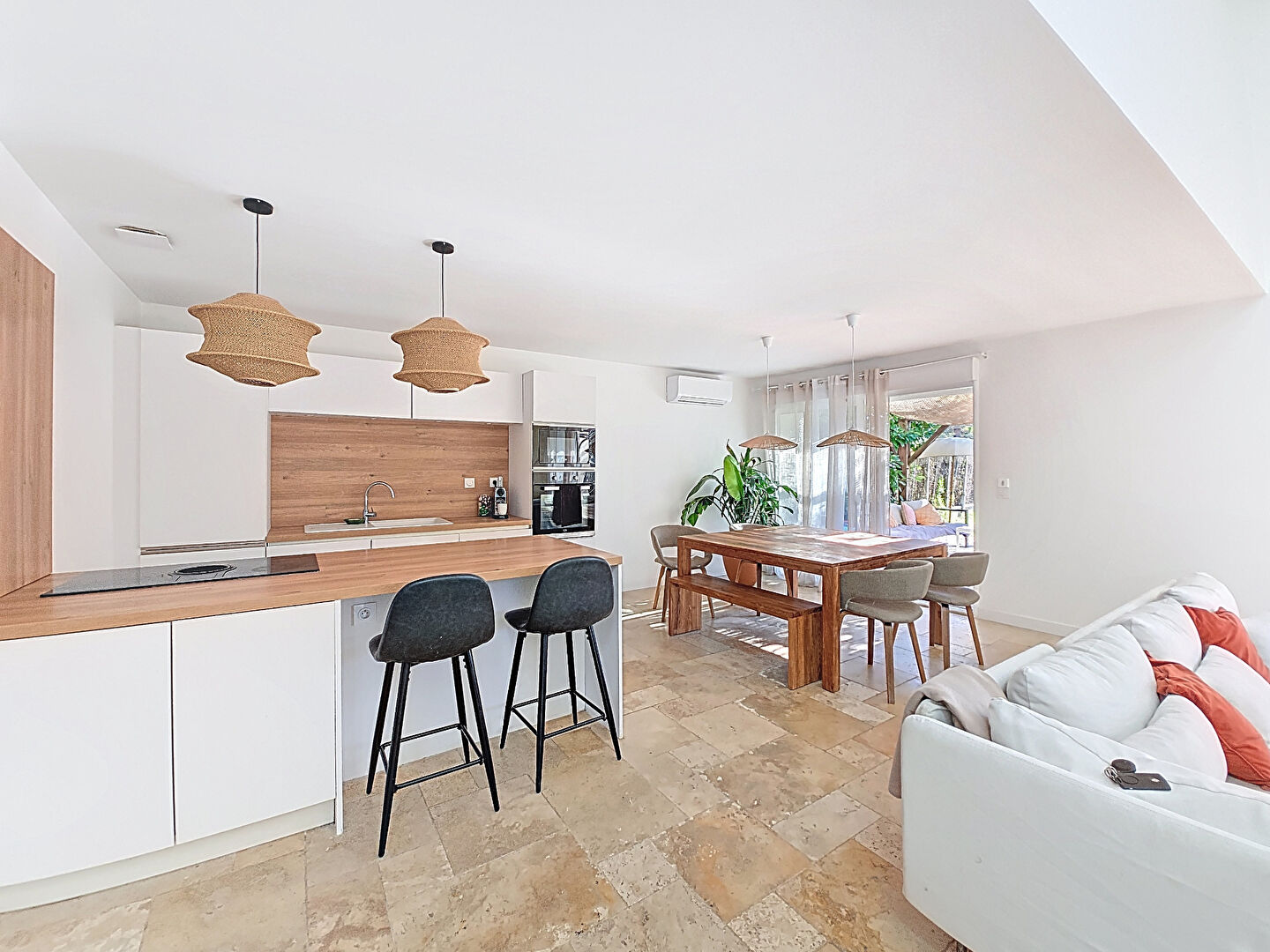 Au rez-de-chaussée : Dès l'entrée, vous serez séduit par un vaste séjour lumineux de 48 m² exposé Est-Sud, offrant un espace de vie convivial et chaleureux, avec son salon toit-cathédrale et ses murs en pierre apparente. Ce séjour ouvrant sur une terrasse en bois. Une cuisine aménagée/équipée ouverte complète cet espace. Le rez-de-chaussée propose également une suite parentale complète comprenant un double dressing et une salle d'eau privative avec double douche. Un cellier et WC séparé sont également présents.