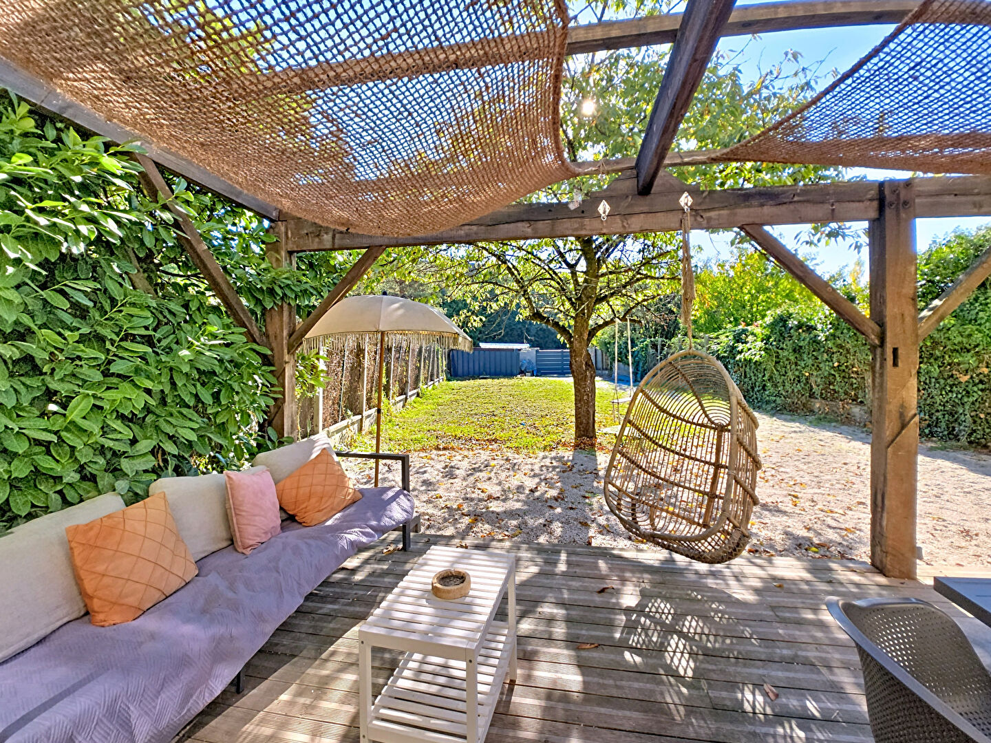 Côté extérieur : La maison s'ouvre sur l'extérieur avec une terrasse accueillante de 26 m² sous une pergola ombragée, idéale pour les repas en plein air, et donne accès à un agréable jardin sans vis-à-vis, parfait pour profiter des belles journées.