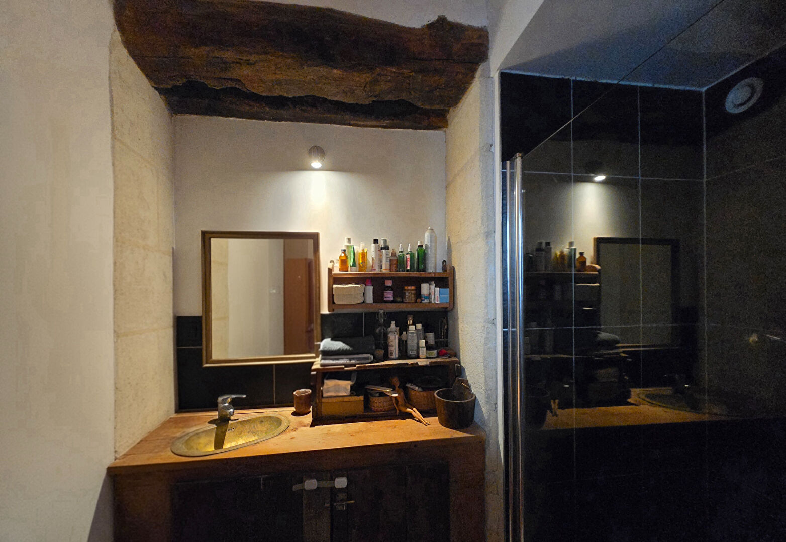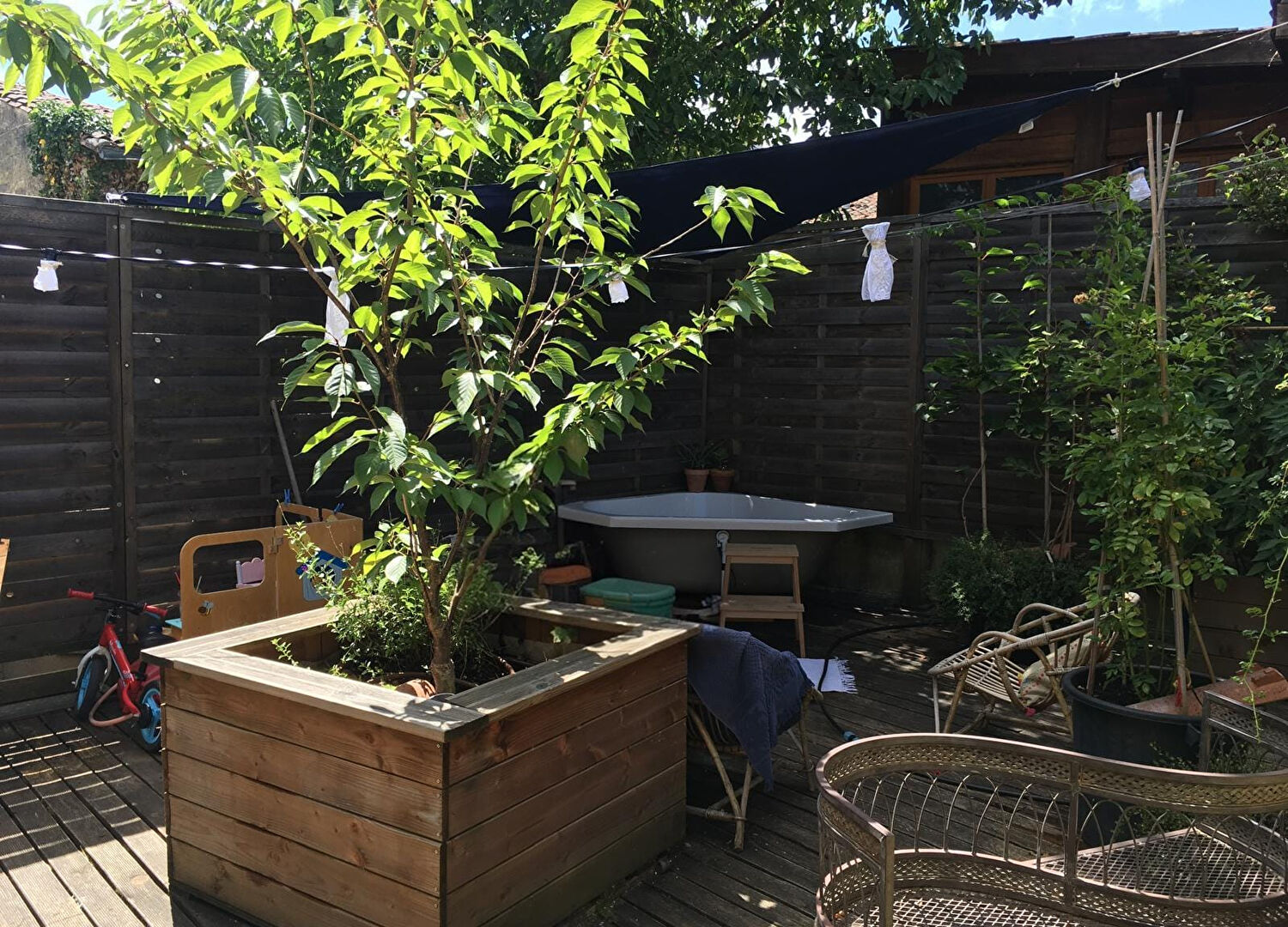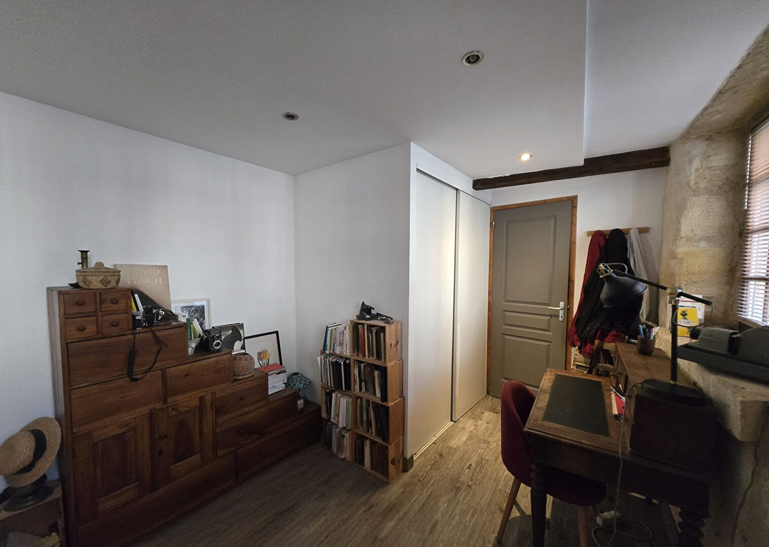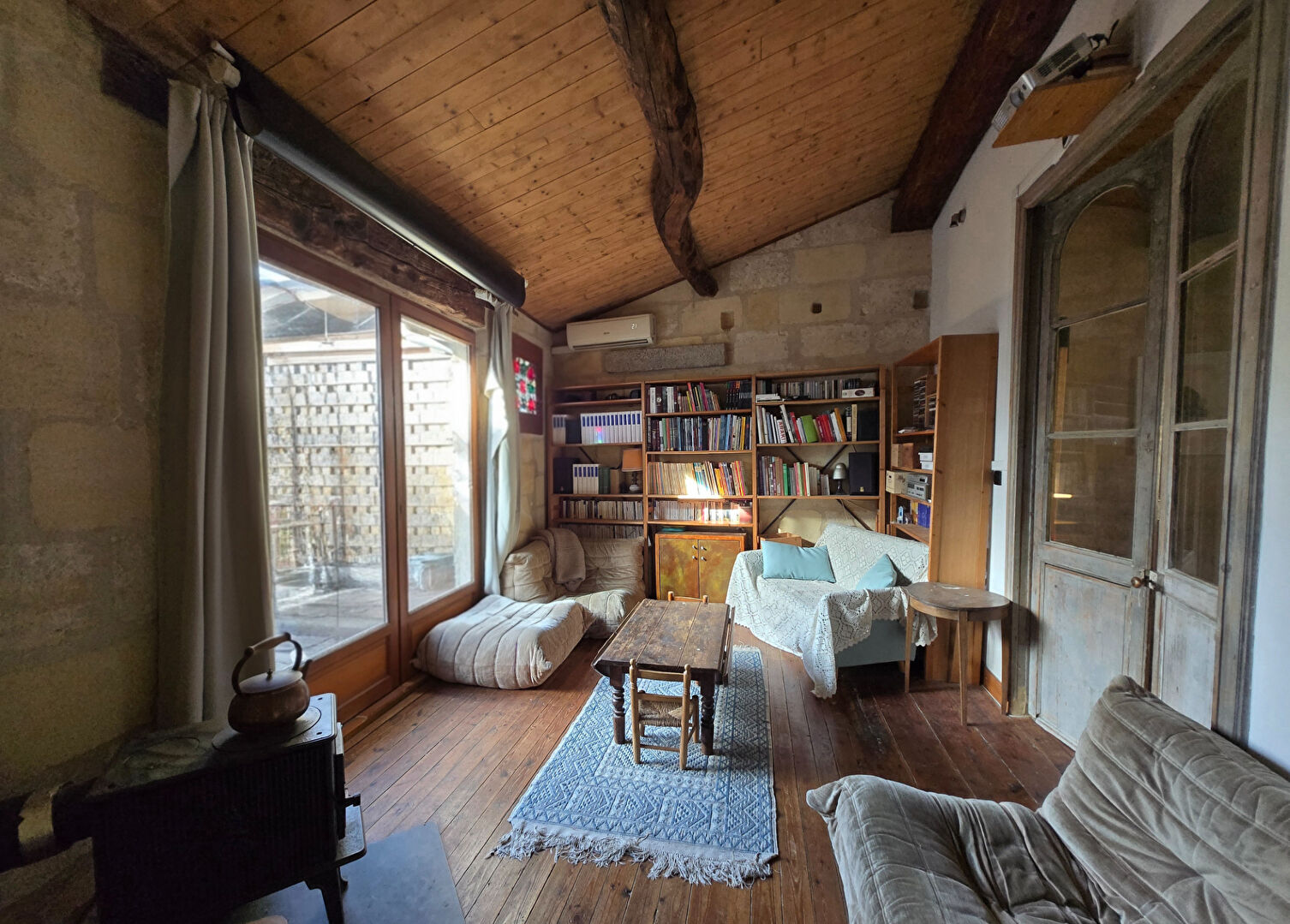 L'étage est équipé d'une climatisation réversible et s'ouvre sur une terrasse en bois de 37 m², exposée au sud-ouest.