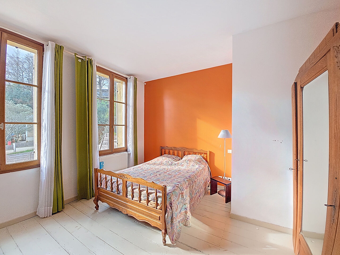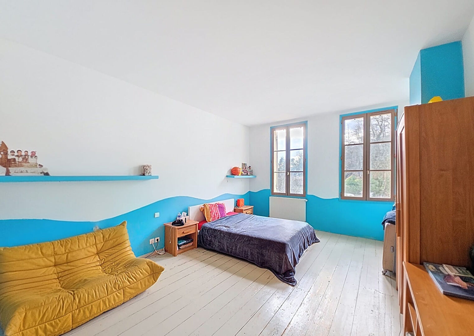 À l'étage, un palier dessert deux chambres supplémentaires de 15 m² et 21 m², toutes deux équipées de doubles fenêtres avec volets en bois. Les sols de la maison sont majoritairement en parquet massif.
