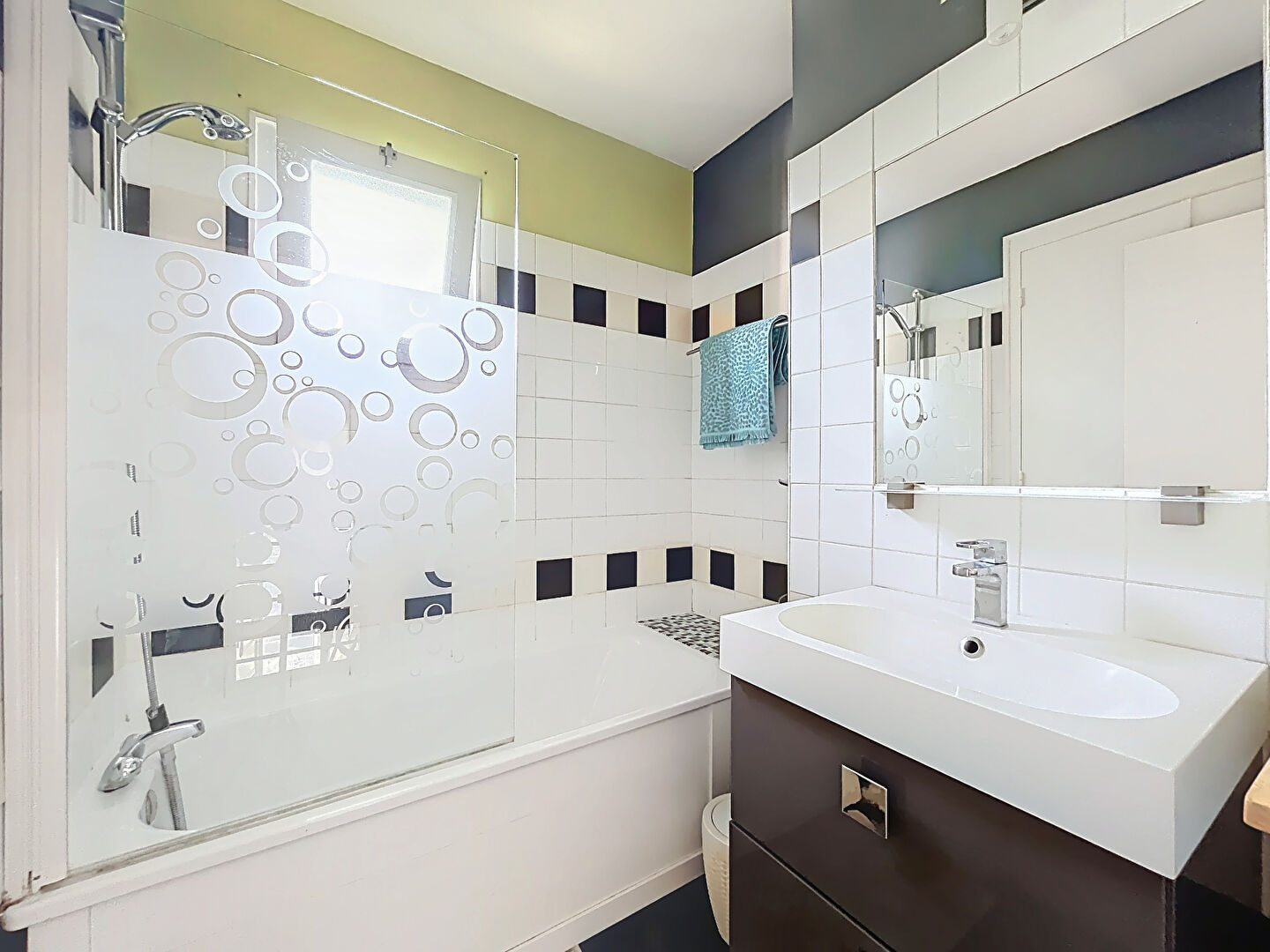 L'espace nuit se situe à l'étage et se compose de deux chambres lumineuses ainsi que d'une salle de bains fonctionnelle. Vous y trouverez également plusieurs rangements pratiques pour optimiser votre aménagement.