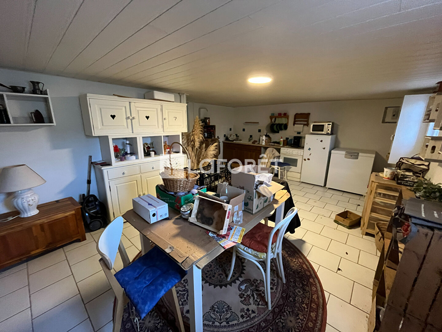 L'étage se compose d'une entrée, cuisine ouverte sur séjour, 3 chambres, salle d'eau et WC séparé. Une pièce supplémentaire est actuellement équipée d'une ancienne cuisine et pourrait aisément être transformée en 4ème chambre ou grand bureau.