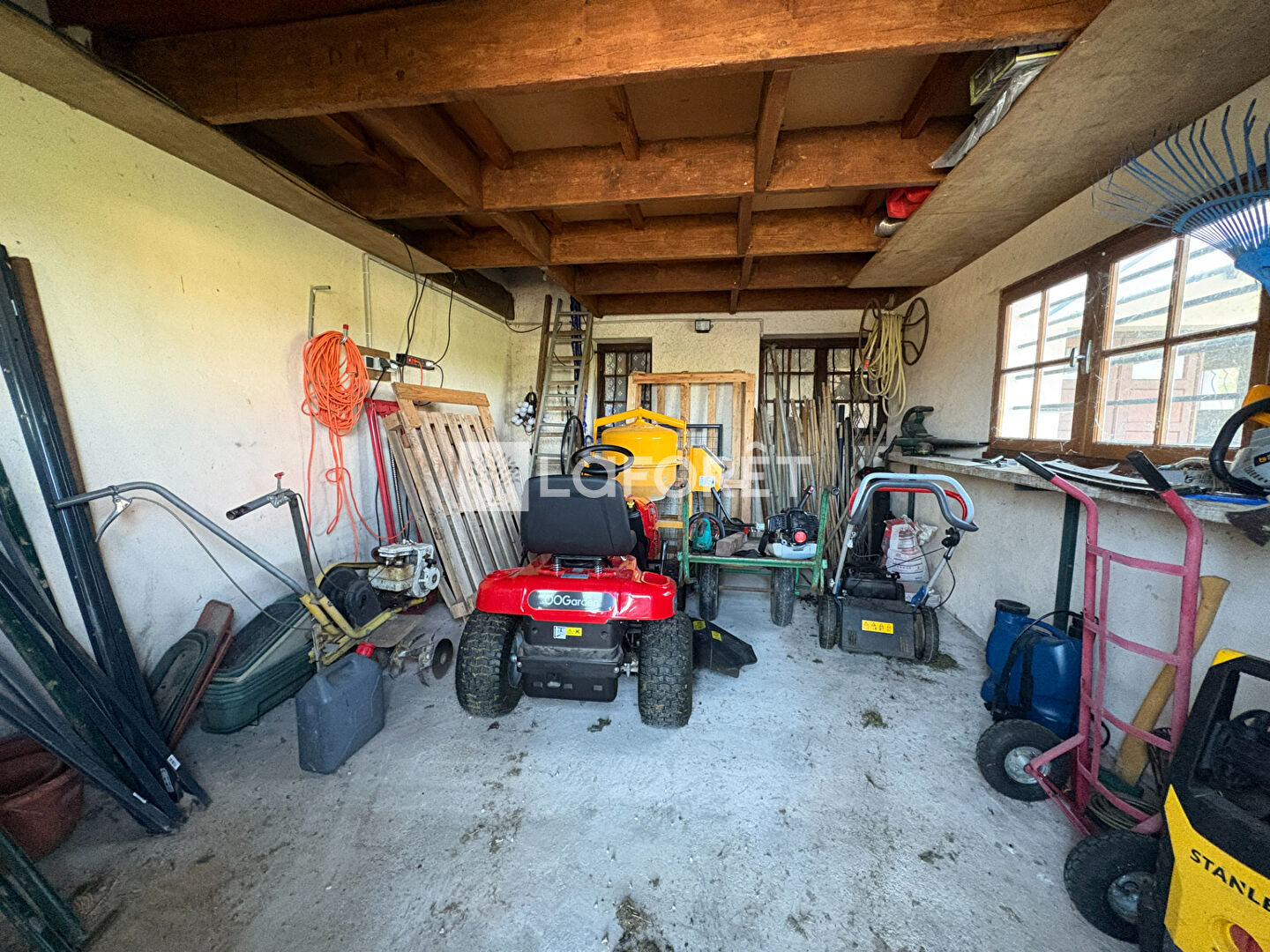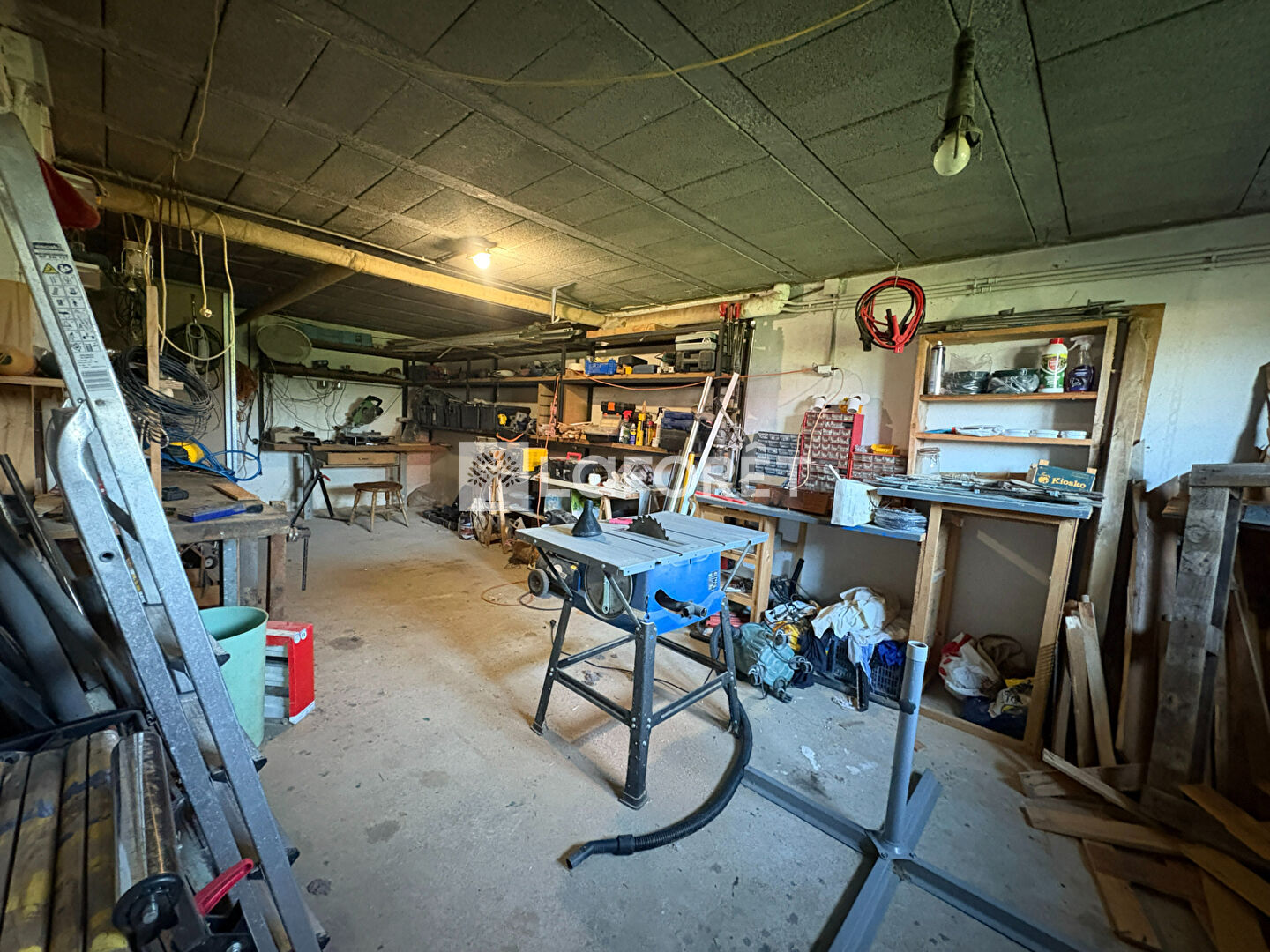 Au sous-sol : garage et buanderie (29m²), atelier (27m²), Chaufferie (27m²), WC, douche, coin bar avec cave. Garage attenant (18m²) avec mezzanine pour rangement.