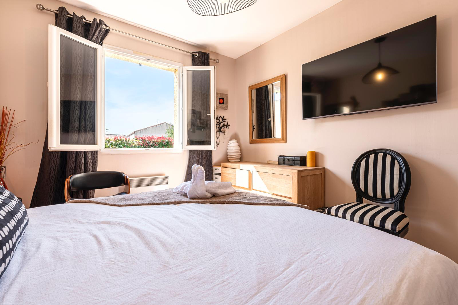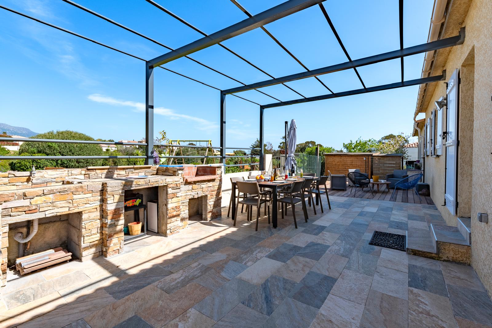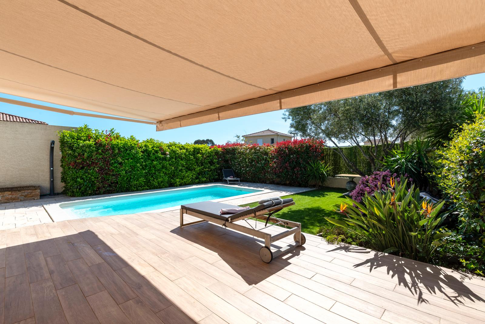 À l'extérieur, profitez d'une jolie piscine chauffée et d'un four à pizza, un véritable espace détente pour vos soirées entre amis ou en famille.