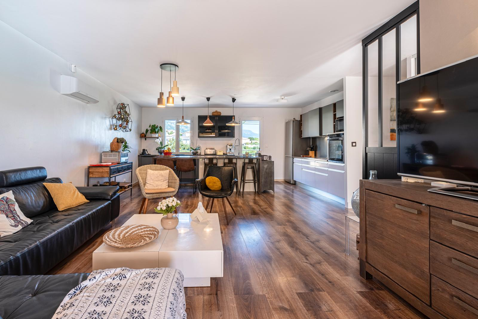 AGENCEMENT : Cette maison mitoyenne se compose de 3 chambres, d'une pièce de vie lumineuse et d'une grande cuisine moderne et entièrement équipée, ouverte et fonctionnelle, parfaite pour partager des moments conviviaux.