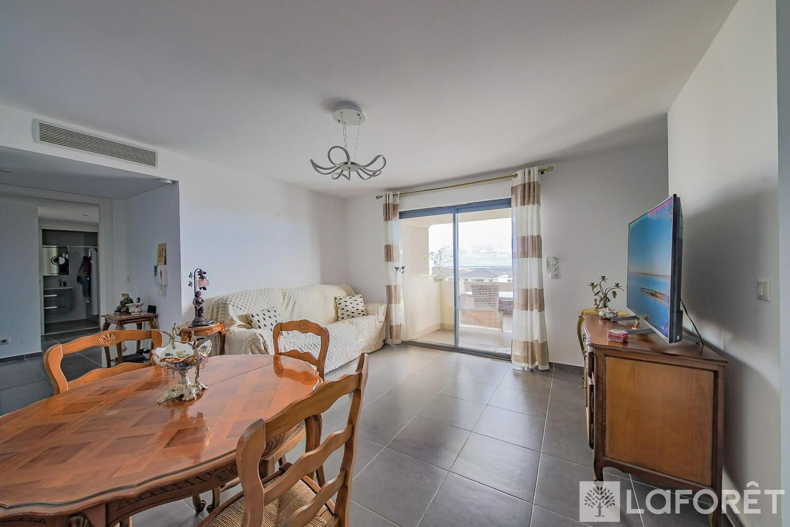 Situé au 3eme étage sur 4, il se compose d'une pièce de vie lumineuse ouvrant sur une vaste terrasse couverte de plus de 36 m², orientée plein Est,