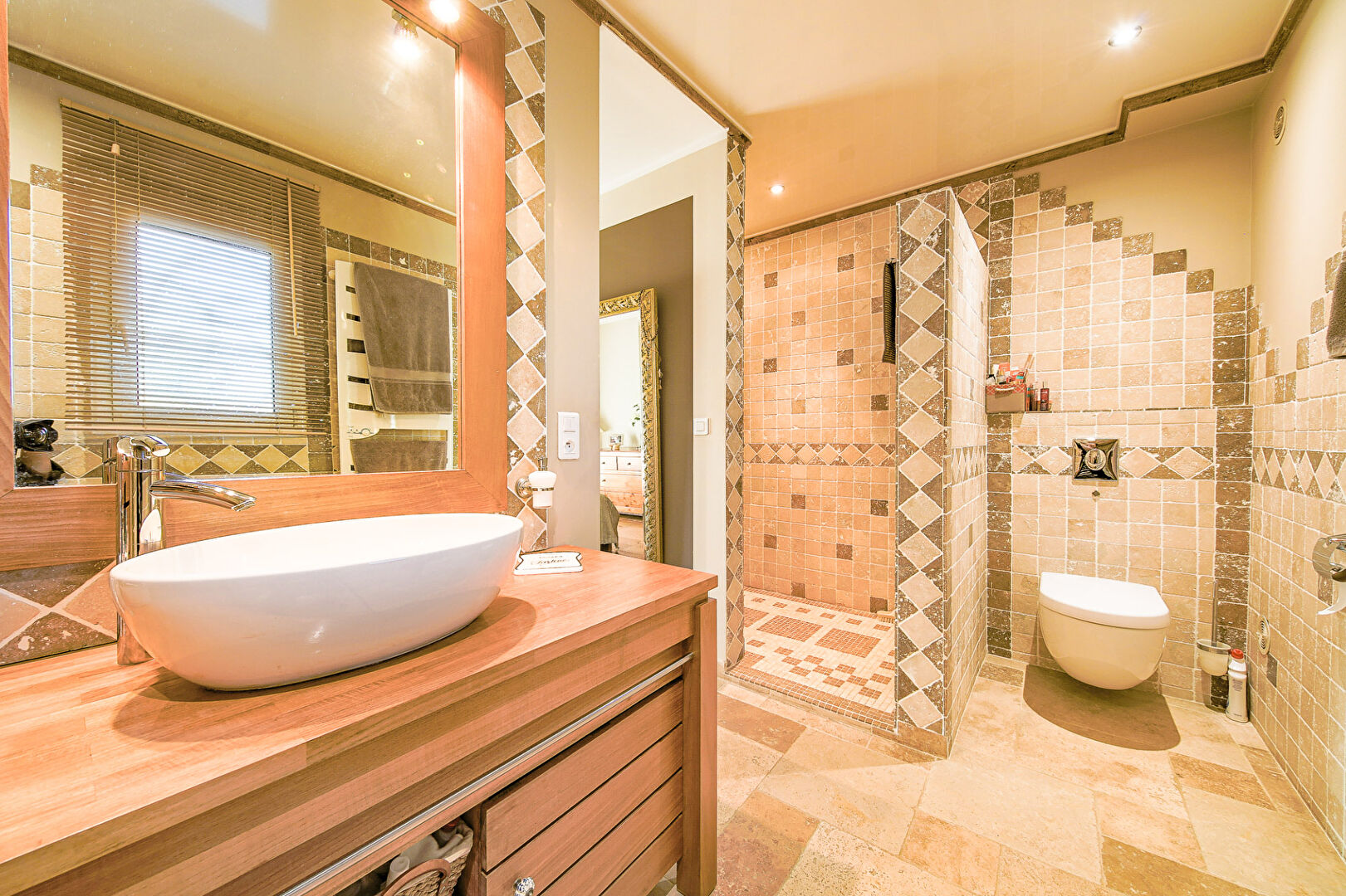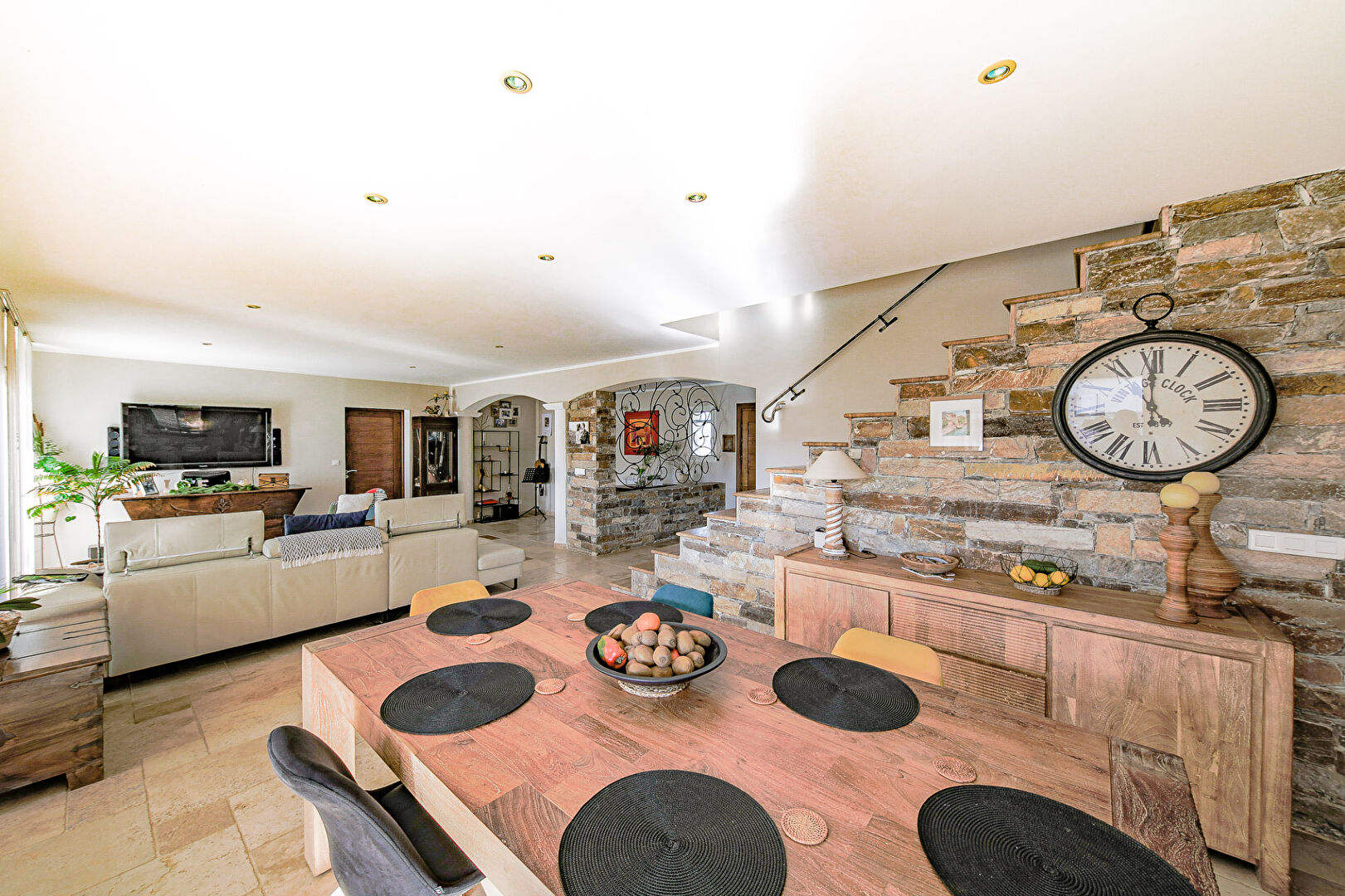A l'extérieur, une grande piscine chauffée, un local technique aménagé, un garage, des terrasses, sur un terrain clos d'environ 670m² avec deux entrées automatisées.