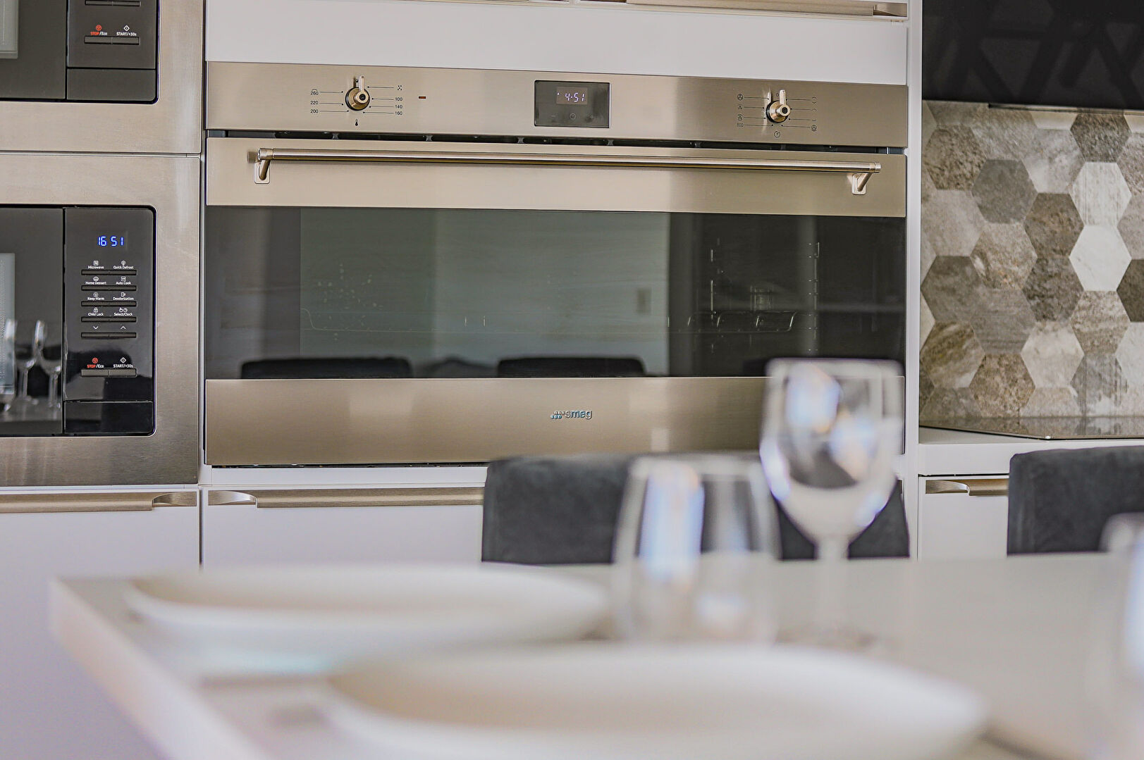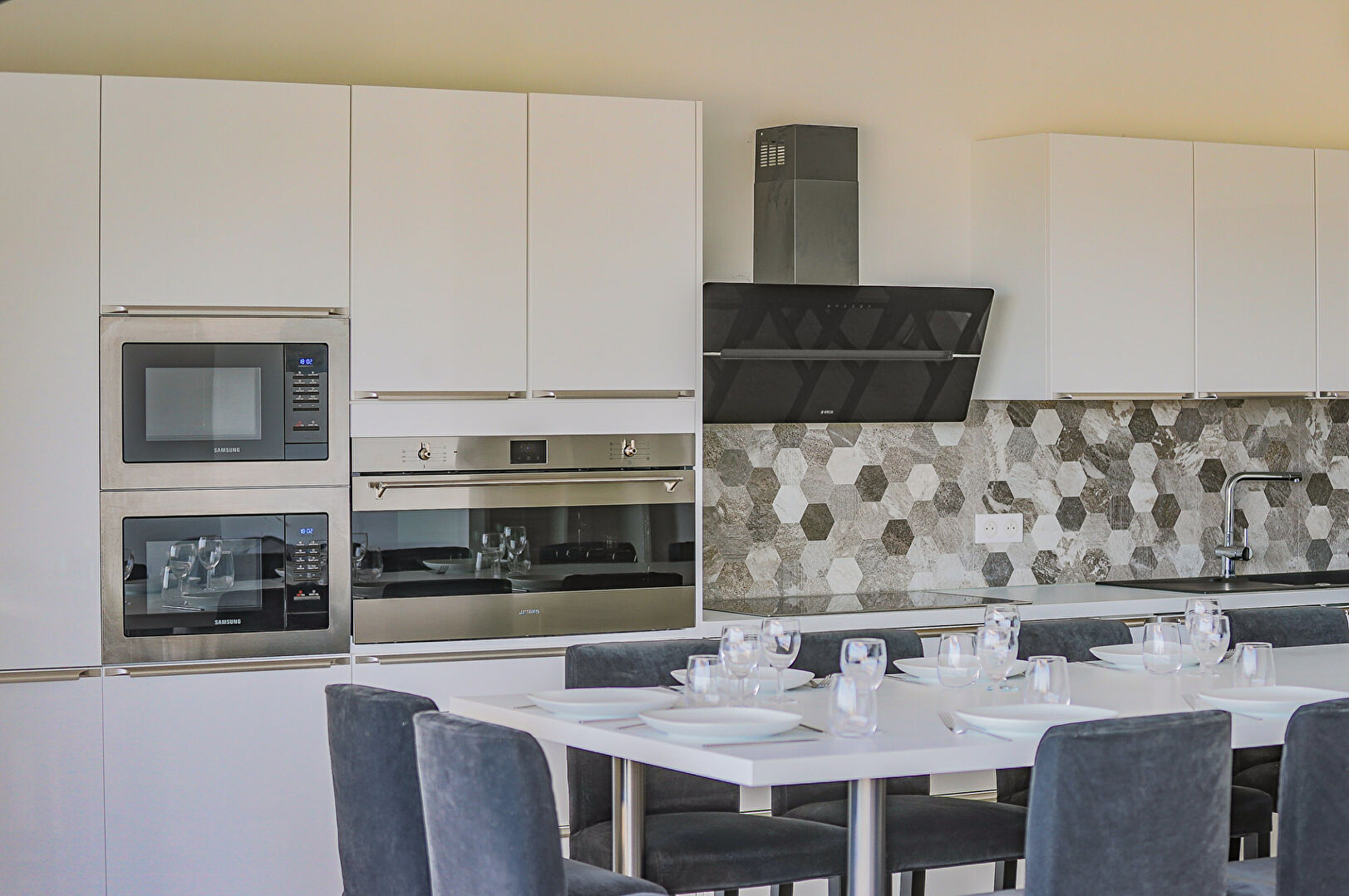 - Une cuisine de standing entièrement équipée de matériaux haut de gamme ouverte sur un séjour donnant accès a une terrasse extérieure de 45m², parfaite pour les repas en plein air tout en profitant de la vue magnifique sur la baie de Calvi , la mer et la citadelle.