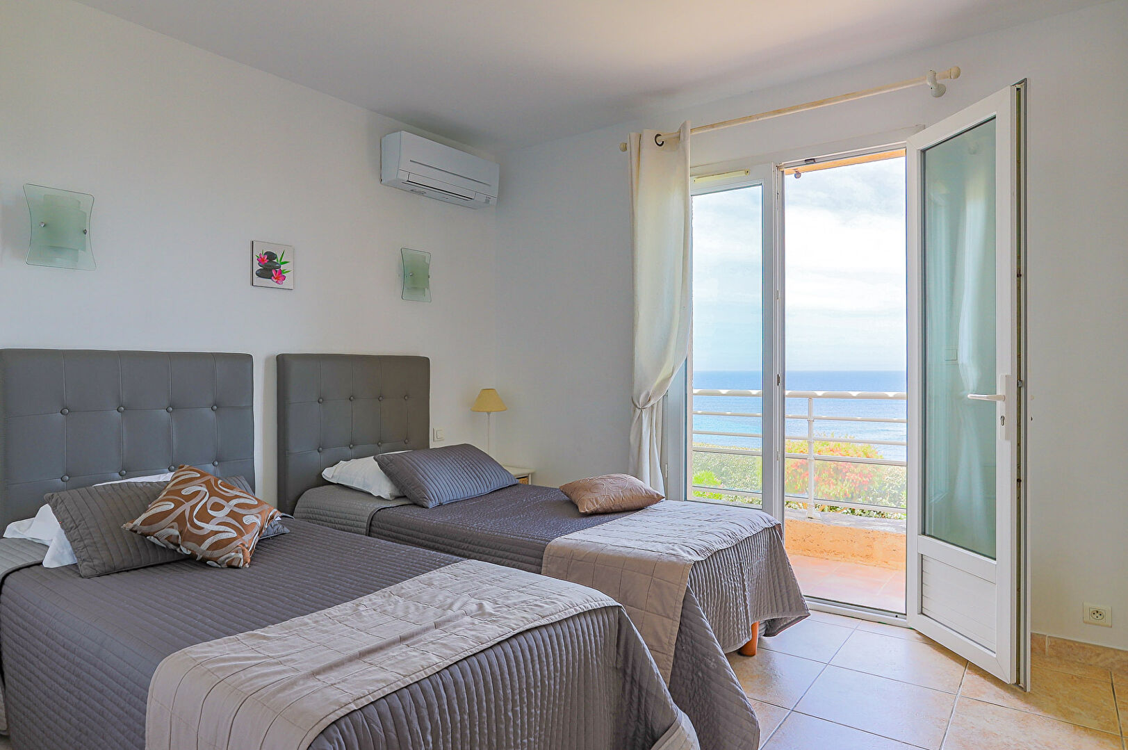 Implantée sur un terrain arboré de 1 312m², la villa se compose, au rez-de-chaussée, d'un vaste séjour avec cuisine ouverte ouvrant sur une grande terrasse avec vue mer, de deux chambres, d'une salle d'eau, d'un WC invité ainsi que d'une suite parentale avec salle d'eau et WC.