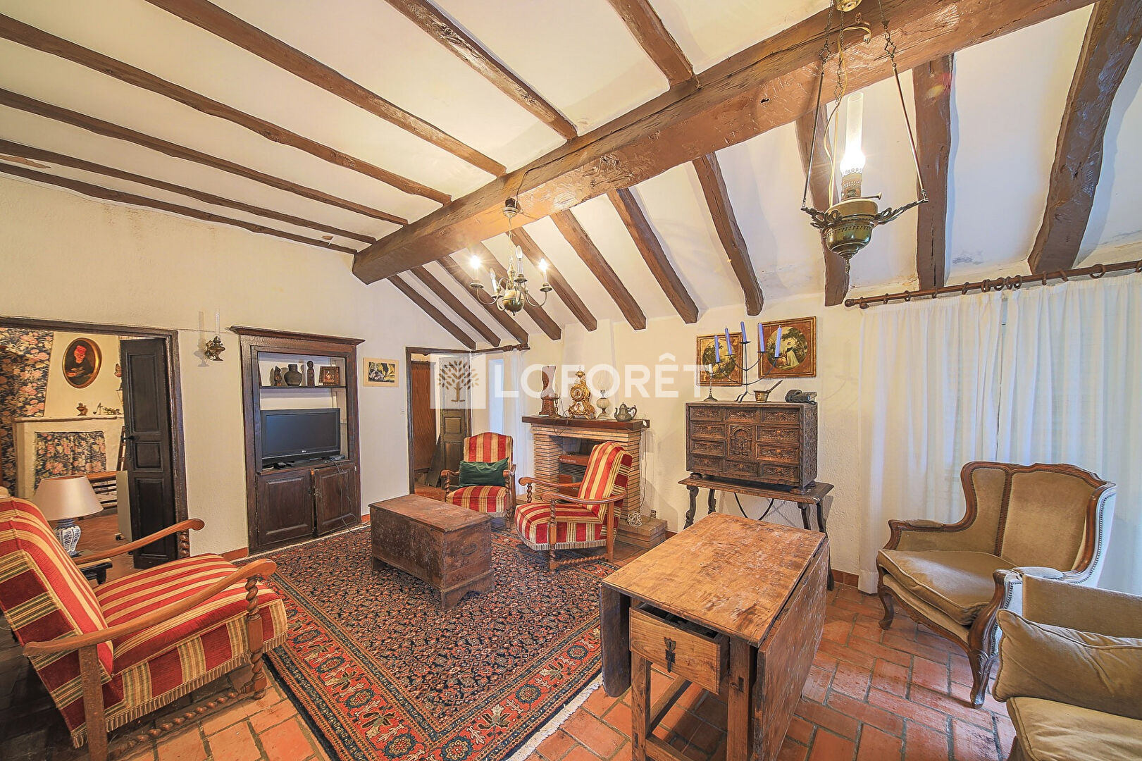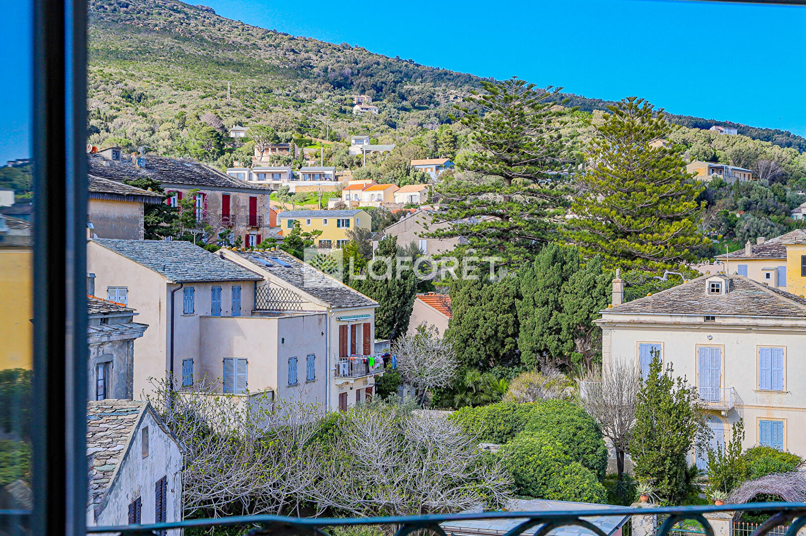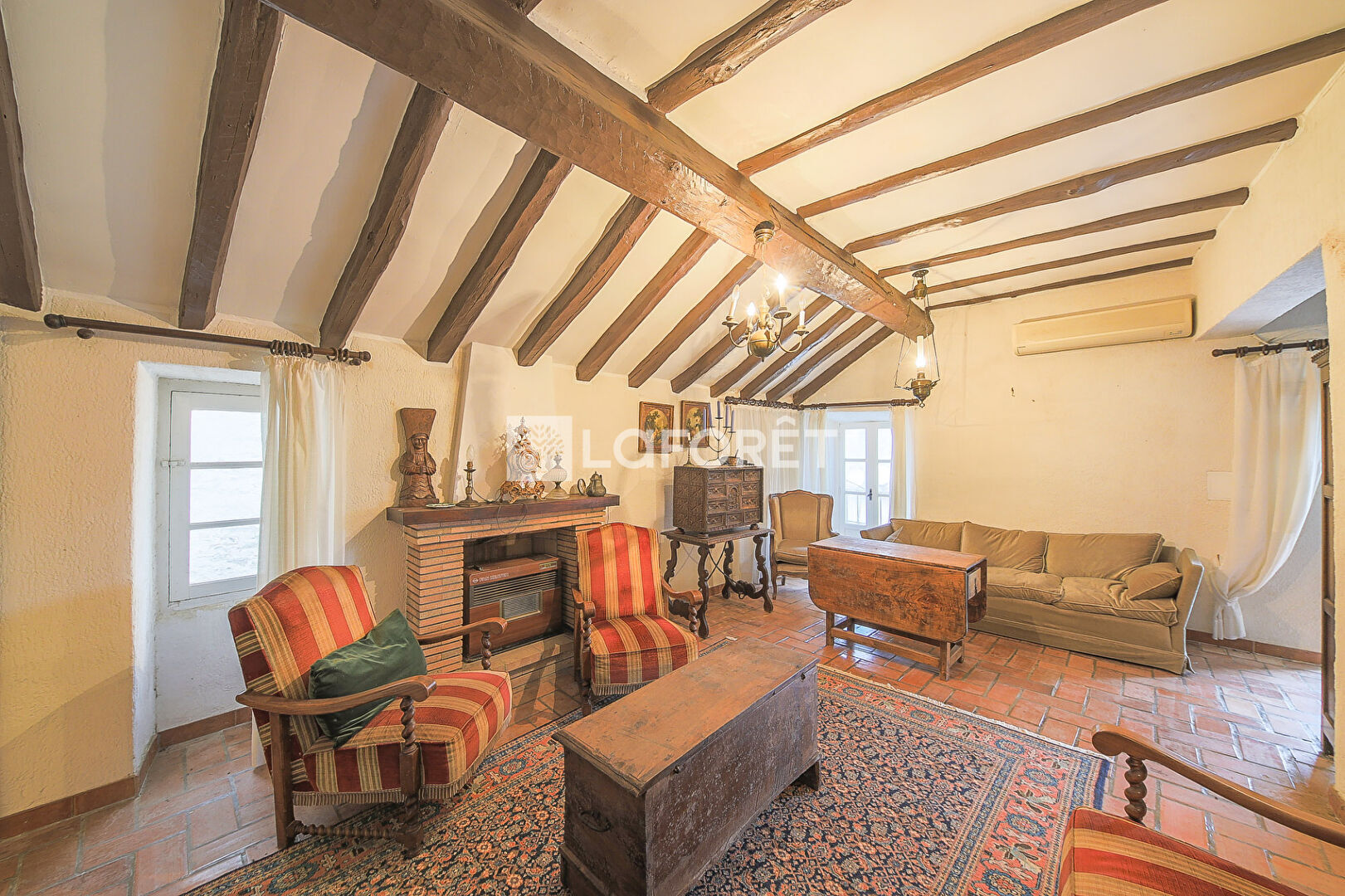 PRESTATIONS : Au coeur du village, balcon avec une vue imprenable, poutres apparentes, sol en tomettes, façades en bon état, climatisation.