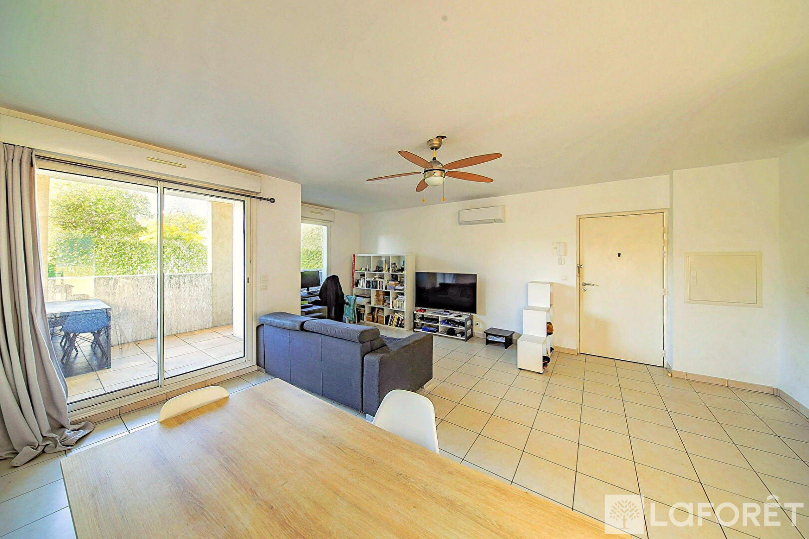 Agencement : Une spacieuse pièce de vie salon/cuisine de 37 m² avec terrasse et balcon, deux chambres, une salle de bains et un WC séparé.