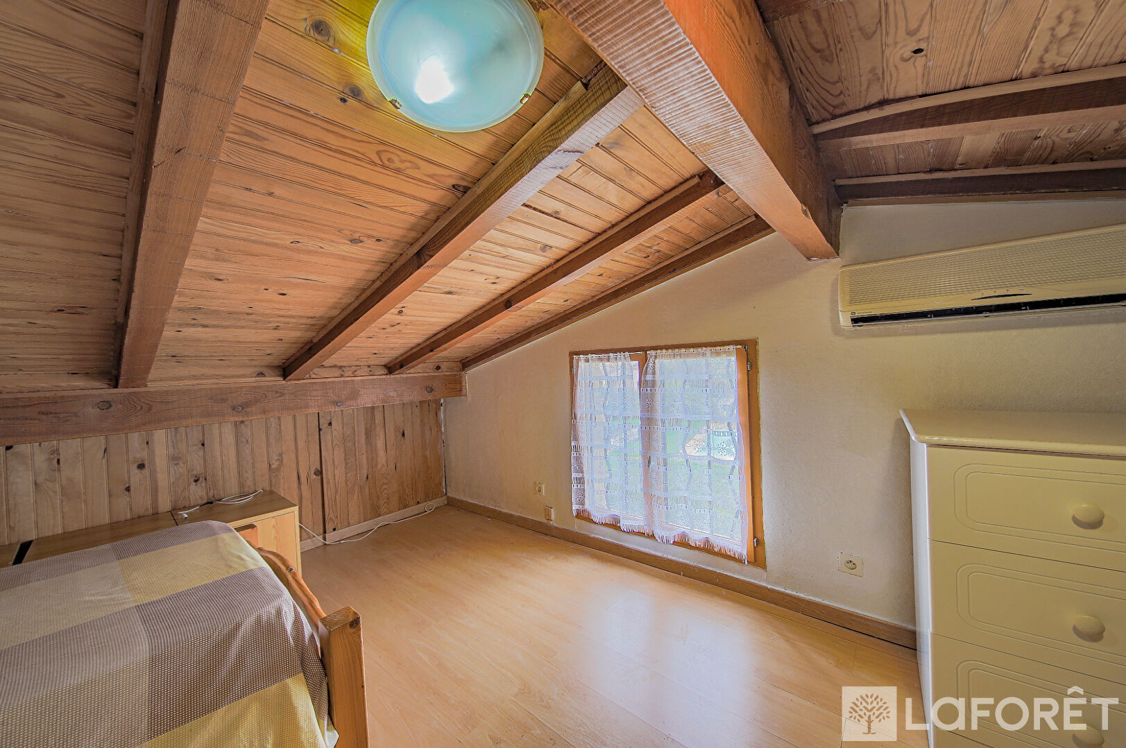 Un F2 indépendant avec séjour cuisine équipée, une salle d'eau avec WC, une chambre et une pièce sous les combles pouvant servir de chambre. Une cheminée