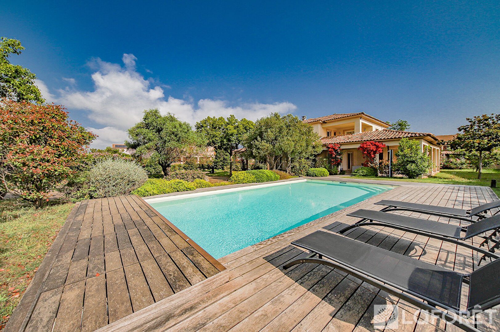 PRESTATIONS : double vitrage en aluminium, portail électrique, cuisine entièrement équipée, climatisation, double cellier, prestations haut de gamme, alarme, arrosage automatique. Combles aménageables. PISCINE