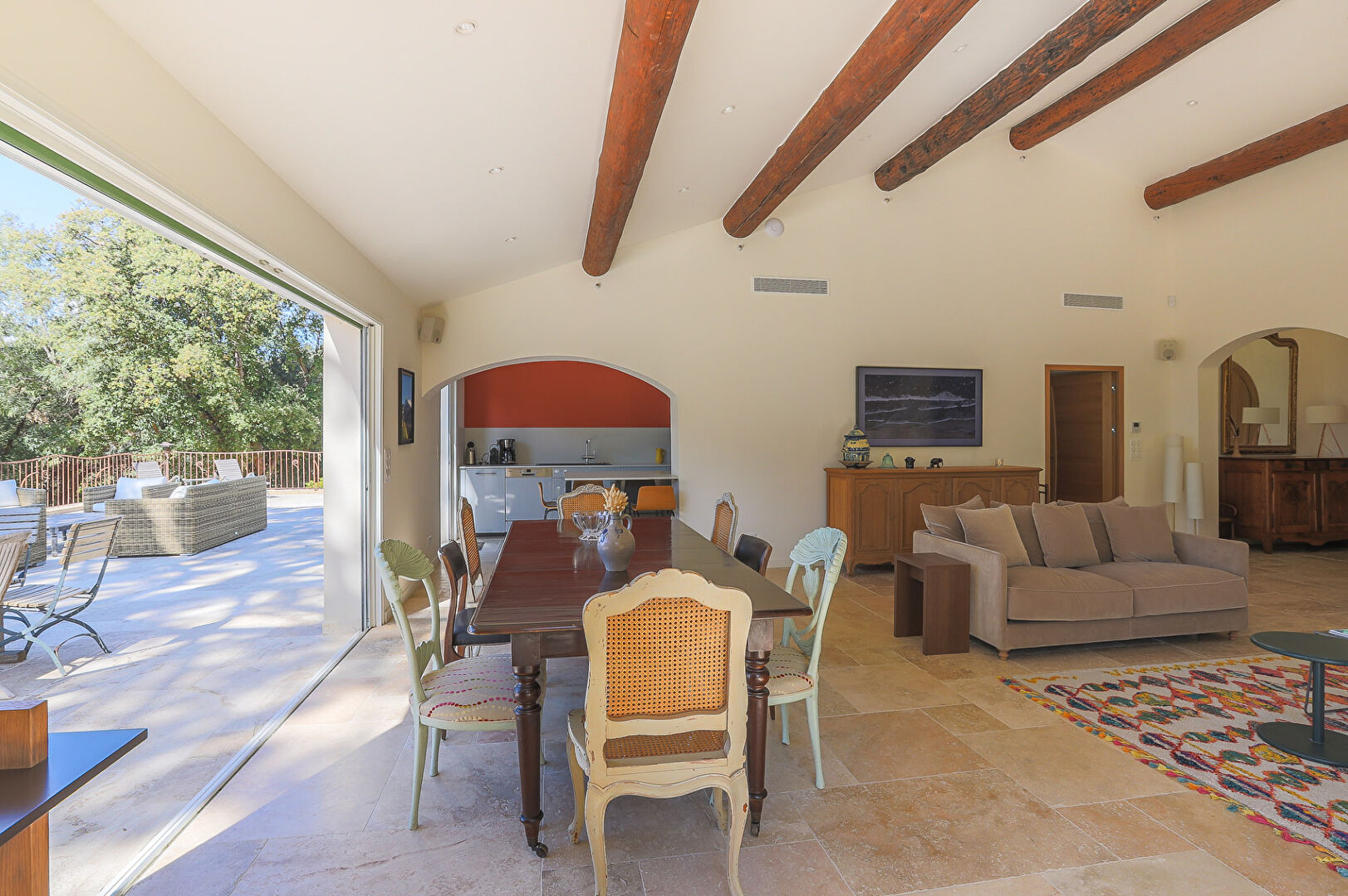 La villa, entièrement climatisée par un système gainable et équipée d'une alarme, propose des volumes élégants baignés de lumière. Les espaces de vie s'organisent autour d'un vaste séjour avec cheminée et belle hauteur sous plafond, largement ouvert sur l'extérieur et prolongé par une grande terrasse. Une cuisine entièrement équipée, semi-ouverte sur le séjour, complète harmonieusement cet ensemble et bénéficie d'un cellier attenant.