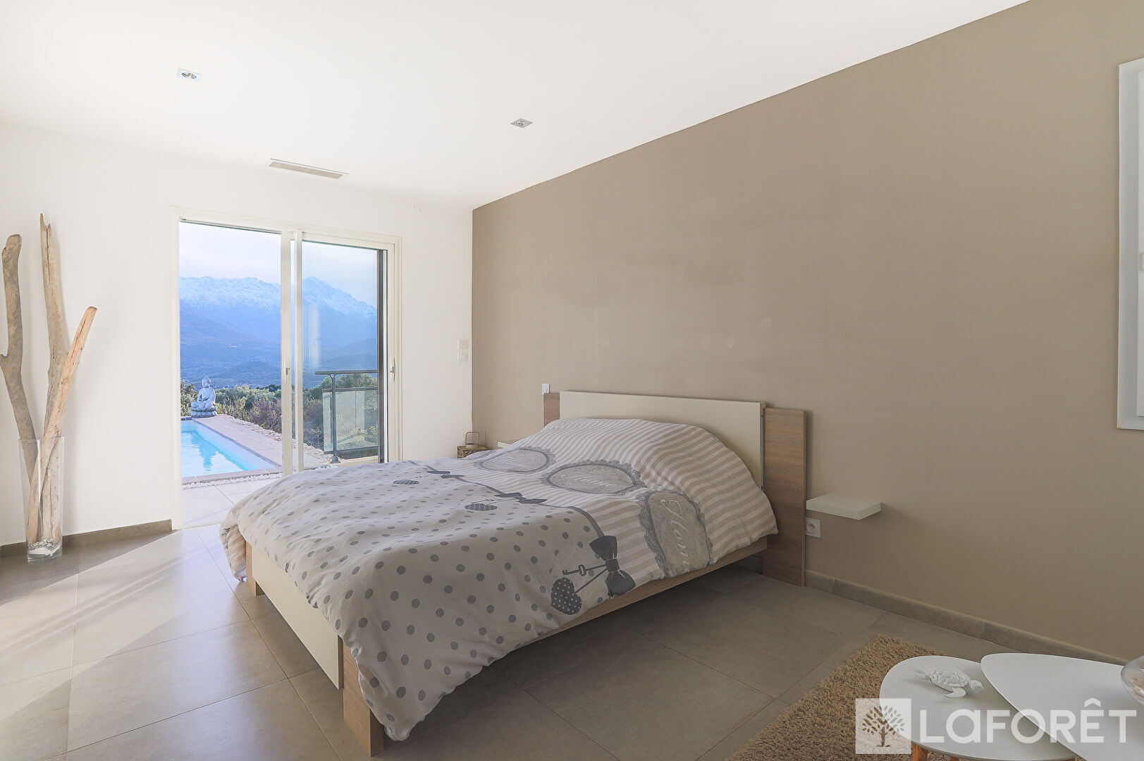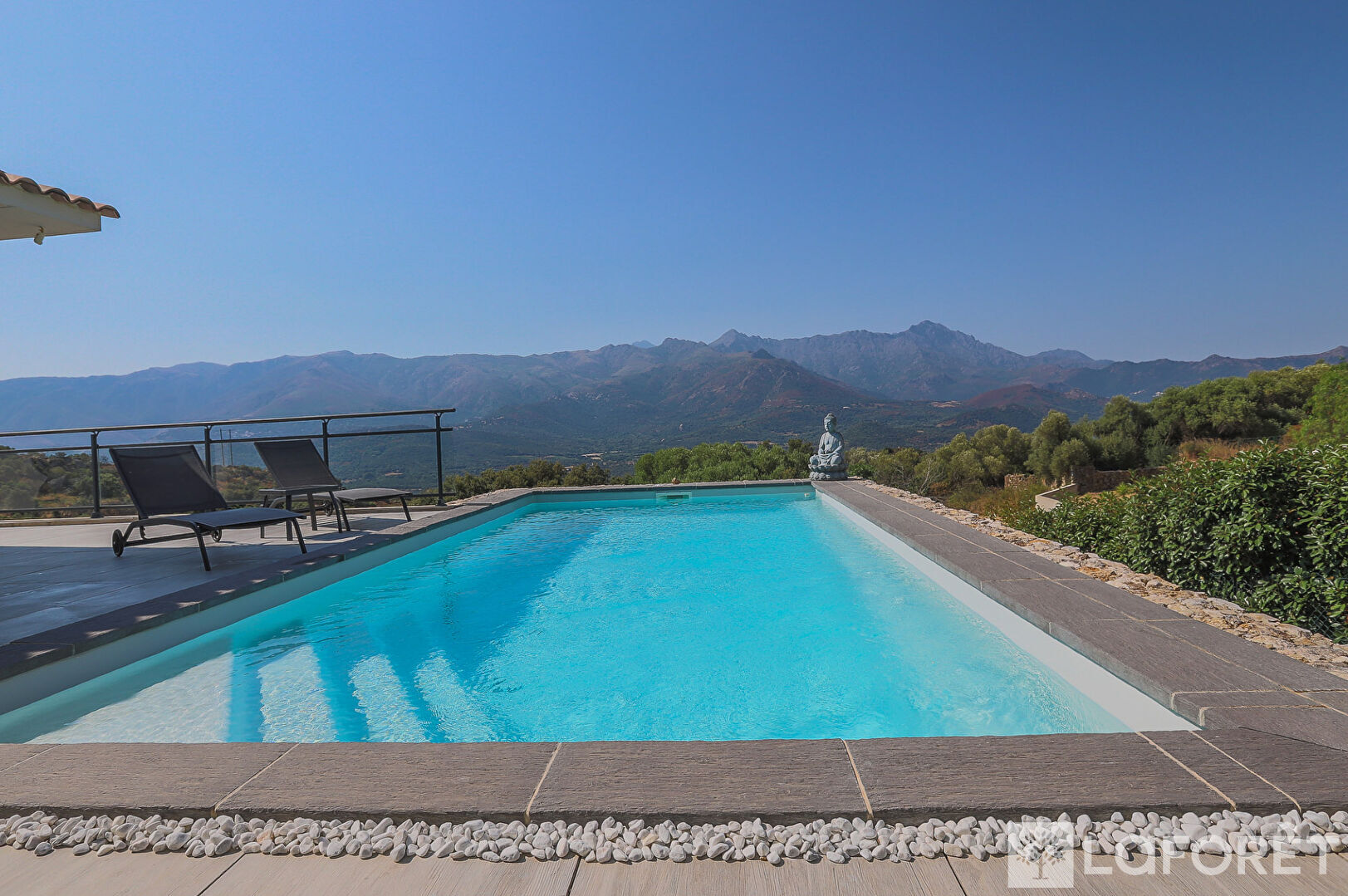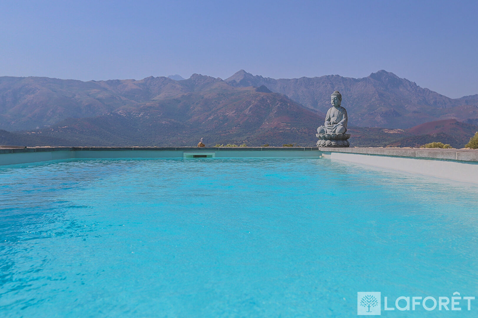 La propriété est édifiée sur un terrain entièrement clôturé de 845 m² et bénéficie d'une orientation offrant une vue dégagée spectaculaire sur les massifs montagneux de Balagne et le Lac de Codole.