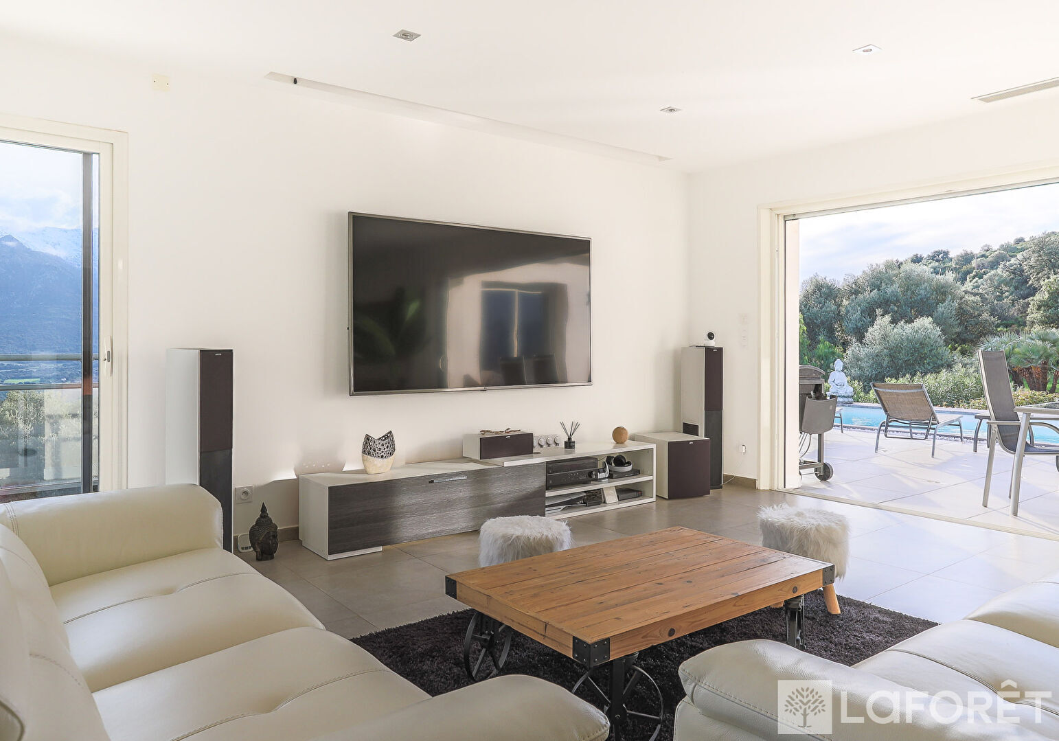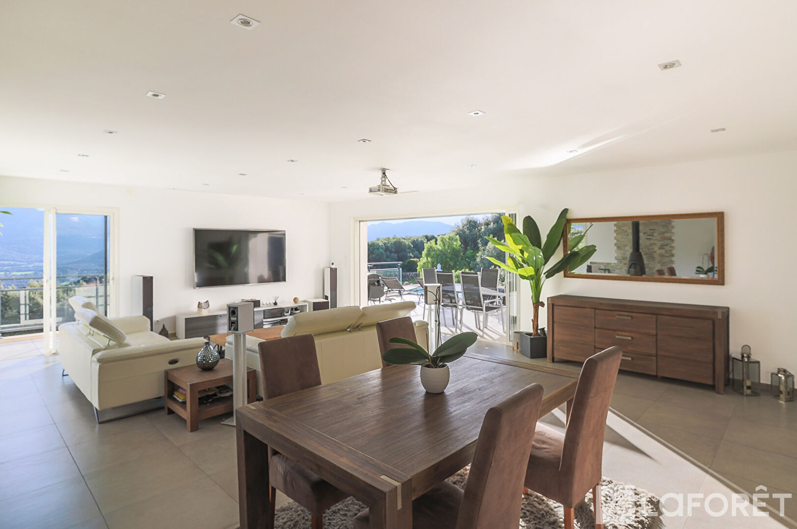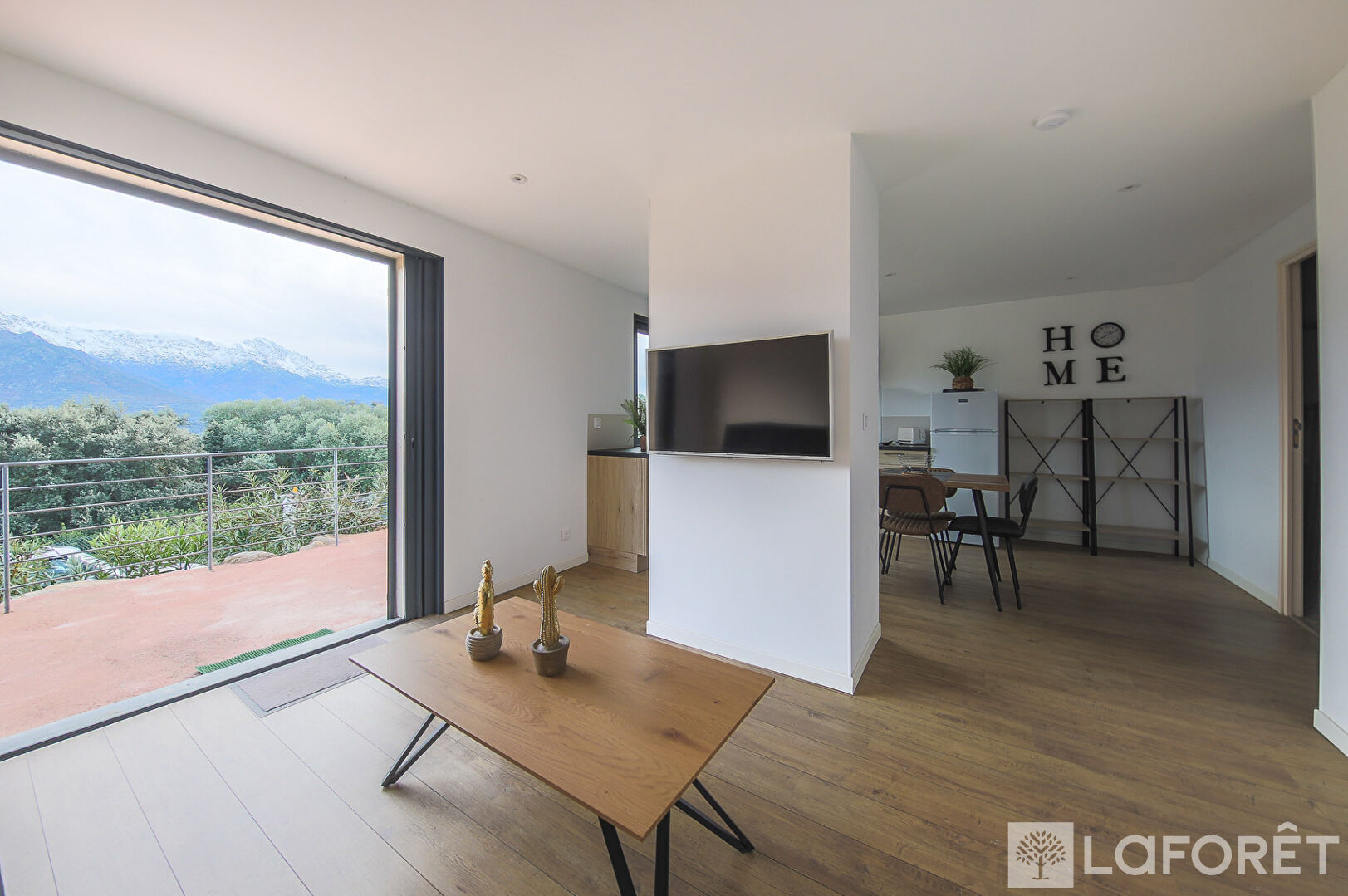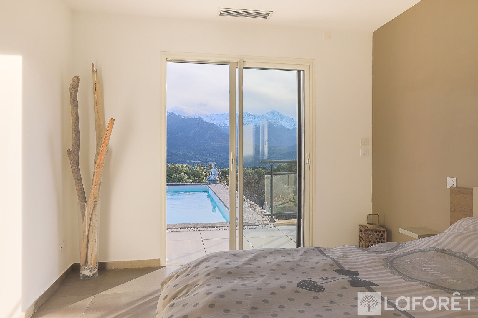La propriété est édifiée sur un terrain entièrement clôturé de 845 m² et bénéficie d'une orientation offrant une vue dégagée spectaculaire sur les massifs montagneux de Balagne et le Lac de Codole.