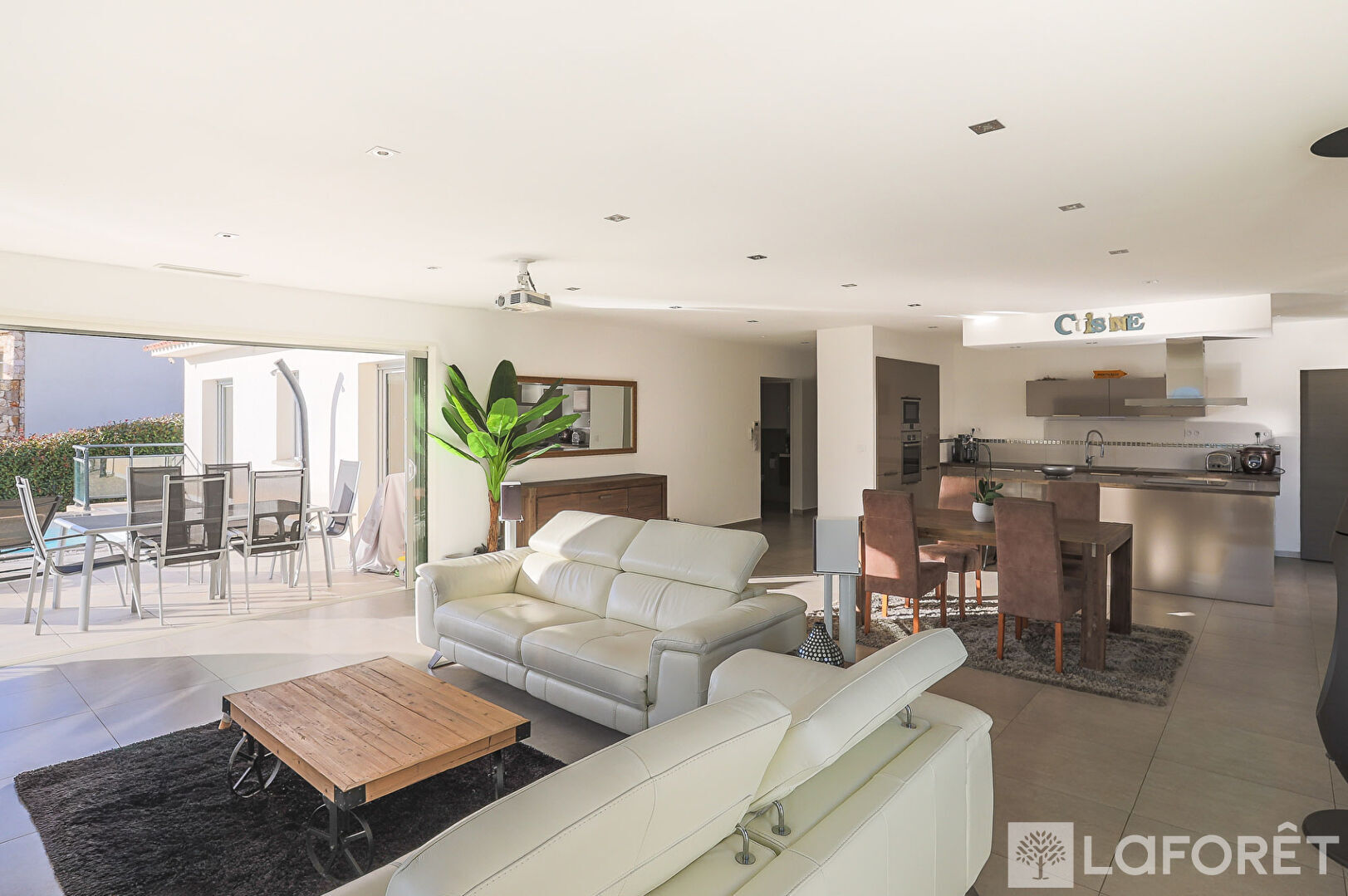 L'intérieur de la villa s'articule autour d'un hall d'entrée qui dessert un vaste et lumineux séjour. Cet espace de vie s'ouvre sur une cuisine ouverte entièrement équipée, complétée par un cellier.