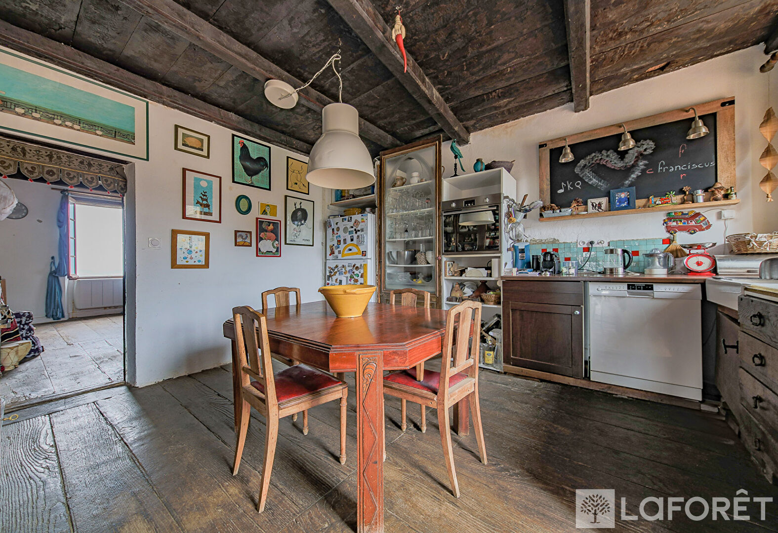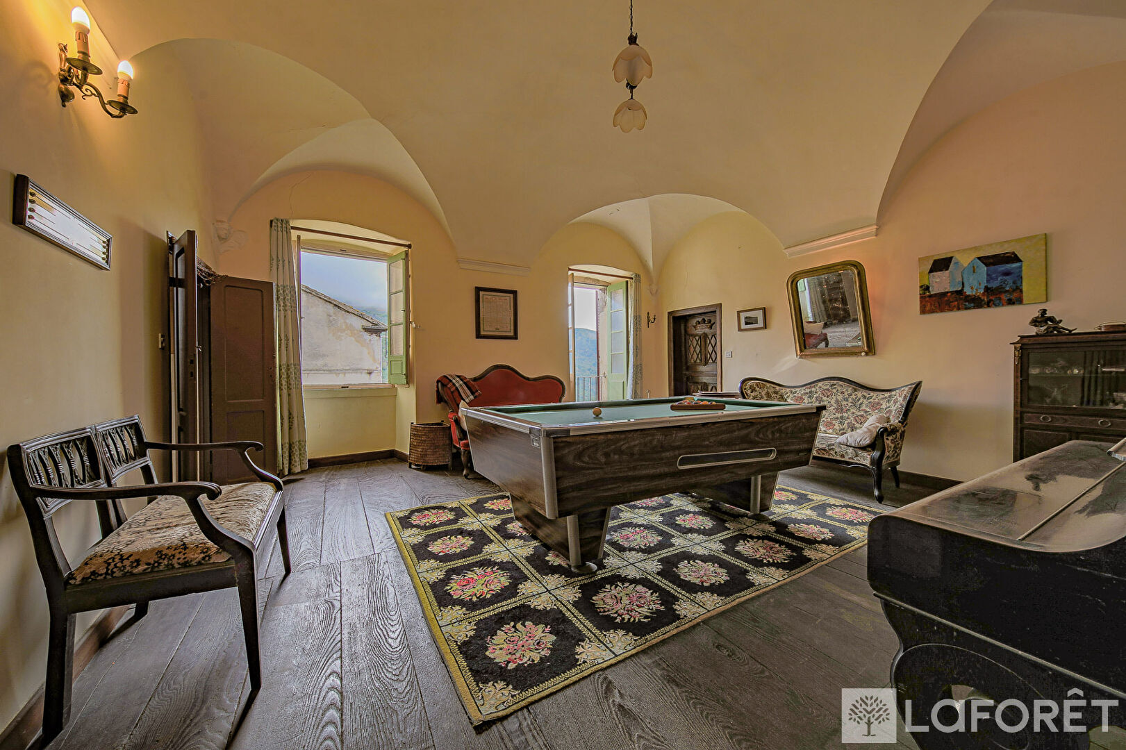 Au 2ème étage un salon d'apparat au charme conservé, trois chambres, une salle de bains wc, une salle avec un four ancien et un accès au grenier à rénover.
