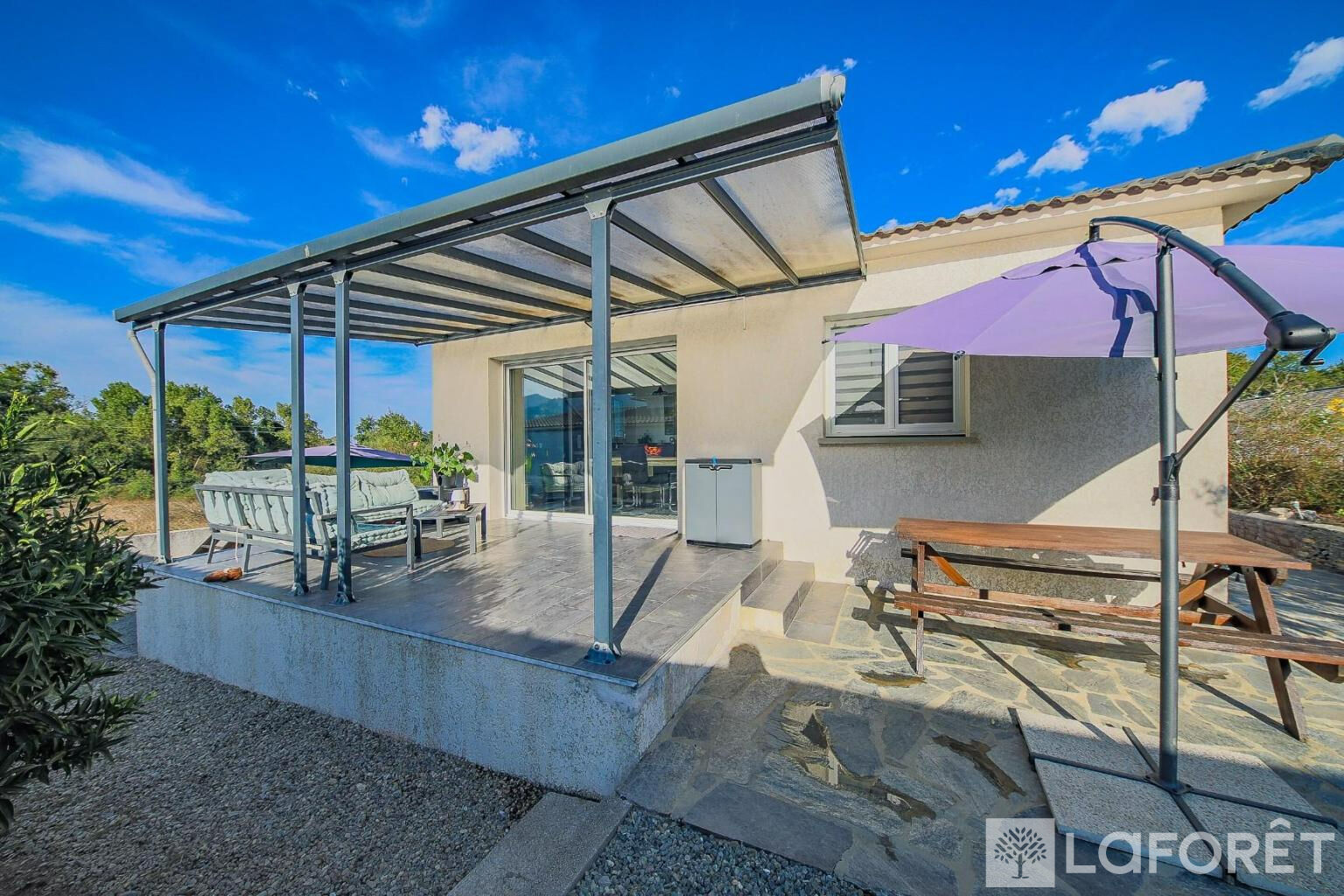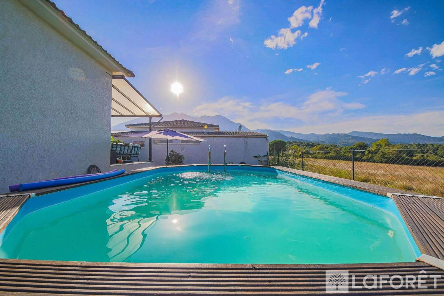 Dans secteur résidentiel à 40 minutes de Bastia, maison récente de 90 m² avec piscine et garage à 5 minutes de la plage de Santa Maria Poggio.