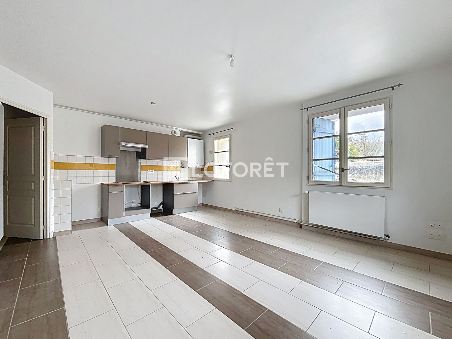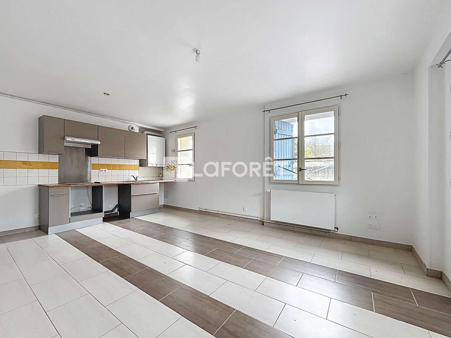 Une agréable pièce de vie lumineuse avec cuisine aménagée ouverte, idéale pour partager des moments conviviaux