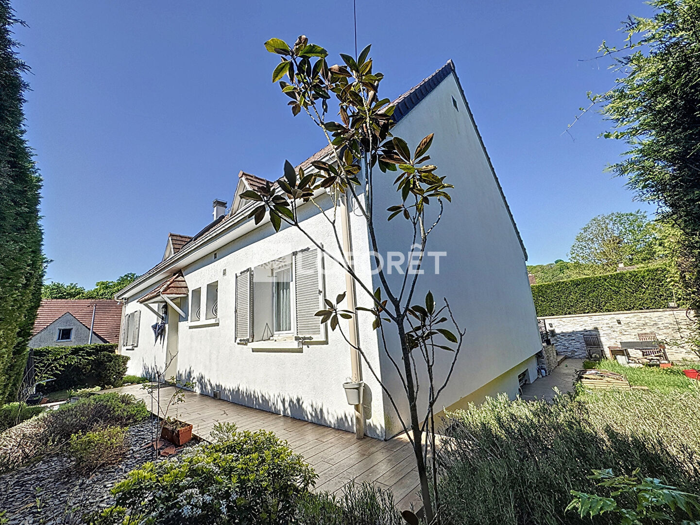 Luzarches, dans un quartier calme et résidentiel, proche des écoles, maison familiale individuelle entièrement rénovée sur sous-sol total compartimenté entièrement carrelé (avec garage, bureau, réserves, chaufferie), offrant au rez de chaussée une entrée cathédrale avec rangement, vaste pièce à vivre lumineuse donnant sur une terrasse qui fait le tour de la maison, grande cuisine aménagée équipée moderne et récente, salle d'eau avec toilettes, une chambre avec placard, lingerie, A l'étage, 4 chambres avec placards, coin rangement, une salle d'eau avec toilettes. Stationnements complémentaires pour 2 véhicules sur le coté de la maison. Jardin de 529 m2 entièrement clos. De belles prestations, matériaux de qualité !!