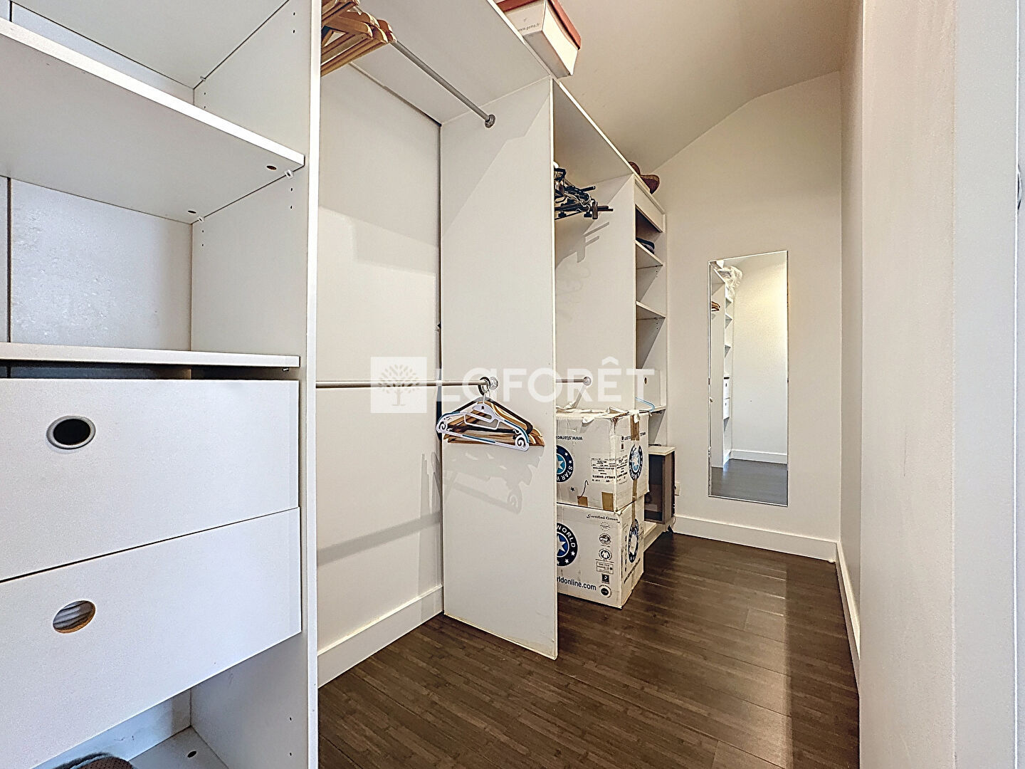 À l'étage, le palier dessert trois belles chambres, toutes équipées de rangements ou dressings intégrés, ainsi qu'une salle d'eau contemporaine.